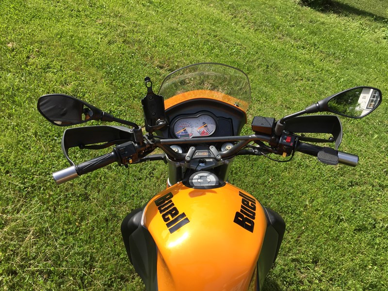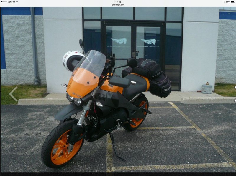 This was purchased by me in Aug of 09 while on leave from Iraq. I rode it every 6 months or so, as seen by the low mileage, but I was injured overseas in late 2010, had several surgeries and could never recover enough to ride safely ( spine and shoulder injury ) and with the meds I have to take, no chance of riding with my senses intact. I would rather have someone else enjoy it. I had the wheels color matched by thenow defunct Buell Racing Team Painter, with epoxy resin paint for durability. The body work was Blue ( as it shows on the title ) but I wanted Orange, so I ordered the Orange kit. I added the all black Buell emblems instead of the stock aluminum ones. It has 2010 turn signals for better visibility, and a Dealer installed Comfort Kit, and I have extra air scoops for it. I also added the tall wind screen and I added the bar end weight to try and help with my nerve injuries, and they help keep the mirrors from shaking off. Last year I installed Aprillia Mirrors for better rear viewing, I have retained the stock mirrors. I have a Cortech soft bag set which is 1 season old, and the Deluxe Buell Tank Bag that was purchased with the bike. The Tank Bag expands an additional 4 inches to fit larger loads, and has internal, adjustable load space dividers, cord routing ports and a removable media pouch. I also added a custom Bettie Paige Dash Board from France. I have retained the original. Other than what I mentioned, the Uly is Factory Stock Mechanically.