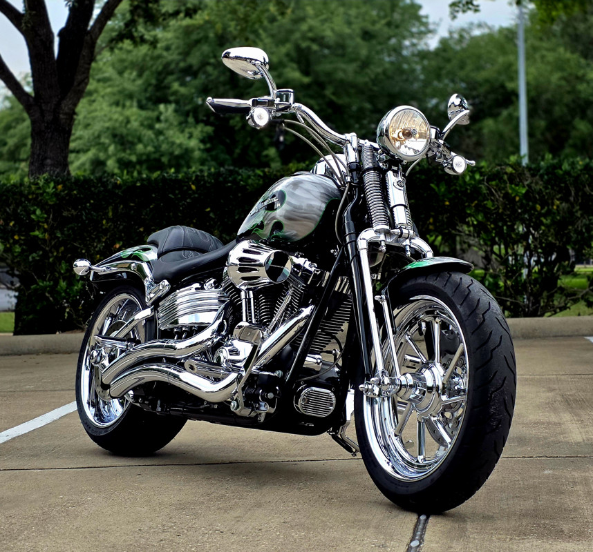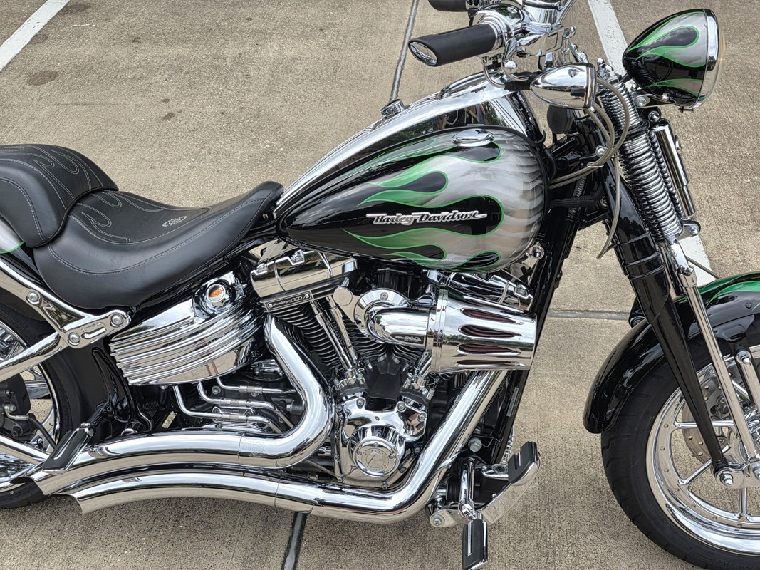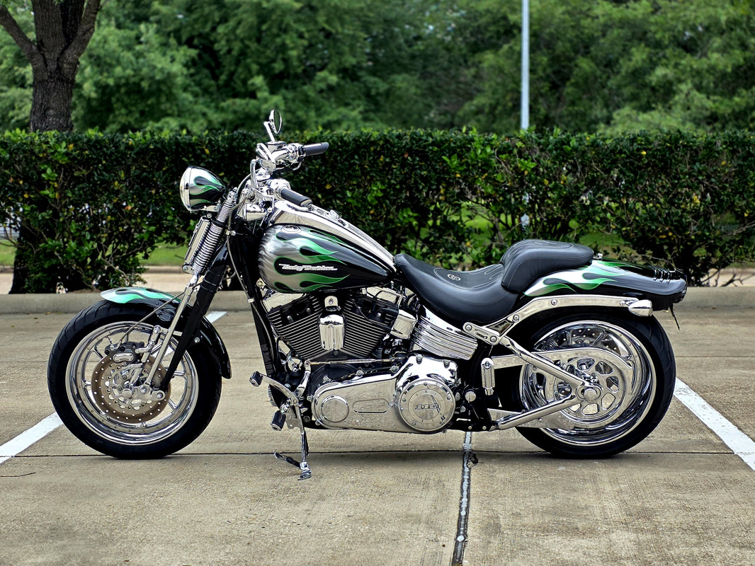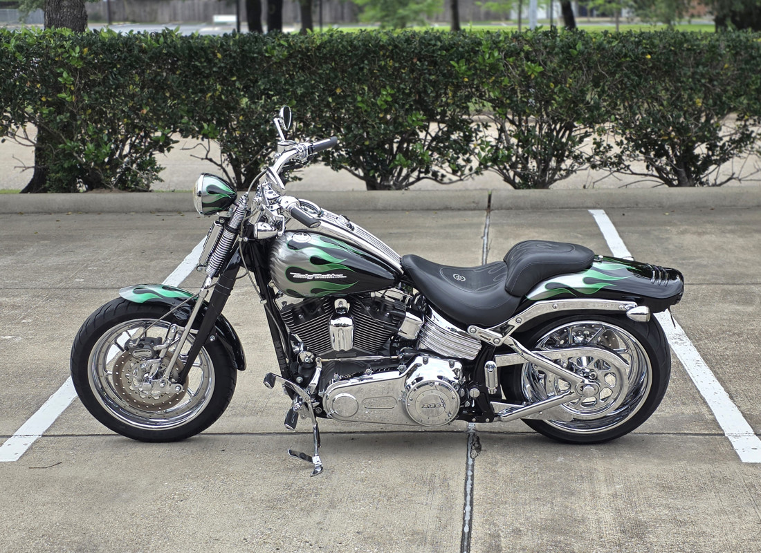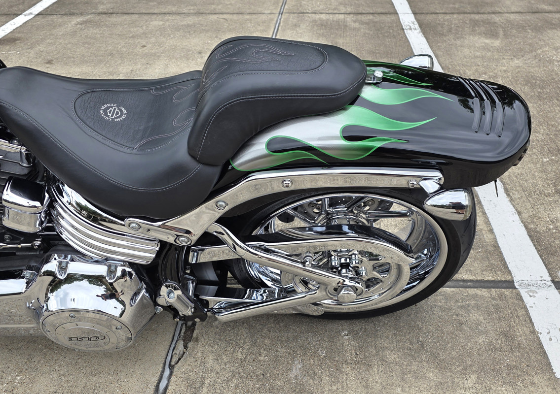 Up for sale is my super clean Black Diamond with Emerald Ice Flames 2009 Harley-Davidson CVO Softail Springer with only 11,717 miles!