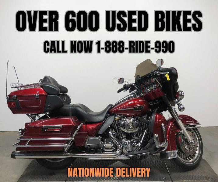 USED HARLEY ULTRA CLASSIC FOR SALE IN CANDY APPLE RED! CLEAN, CLEAN, CLEAN! NO DENTS, NO DINGS, NO SCRATCHES! TAKE A CLOSE LOOK AT THIS ONE AND THE $1,500 IN EXTRAS! DAYMAKER HEADLIGHT, TINTED WINDSHIELD, HIGHWAY PEGS / 4 SPEAKERS, AND THE DUAL RINEHART EXHAUST SOUNDS GREAT! JUST SERVICED AT DEALERSHIP, INSPECTED, ALL FLUIDS CHANGED, RUNS STRONG, EVERYTHING WORKS, NEEDS NOTHING! GREAT BIKE FOR THE MONEY!