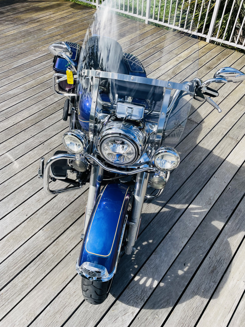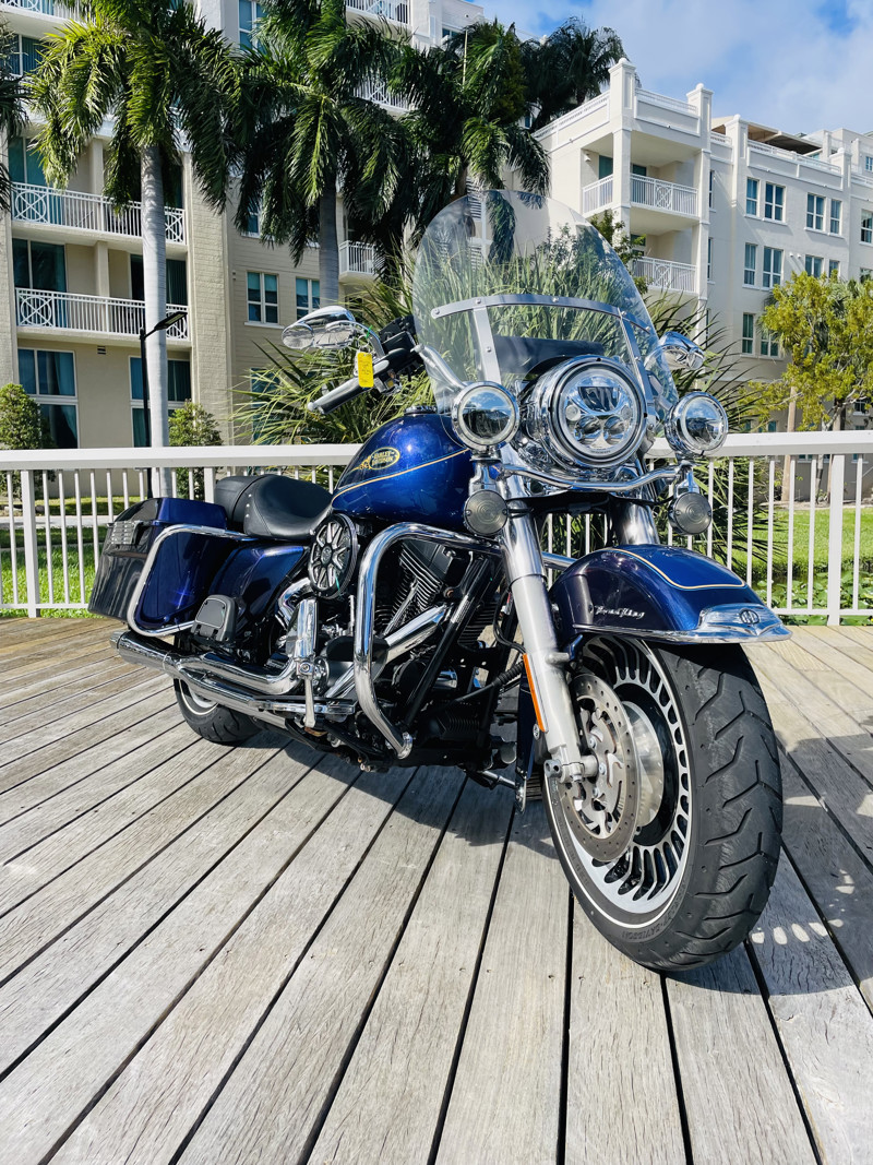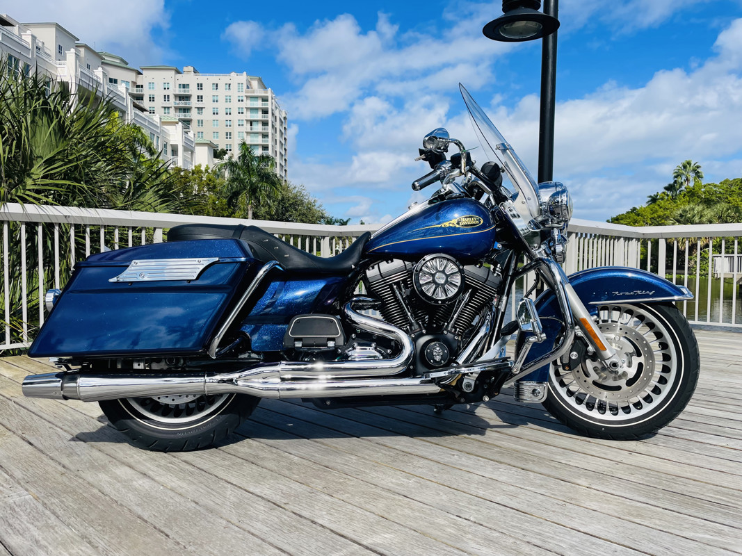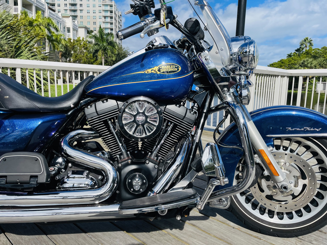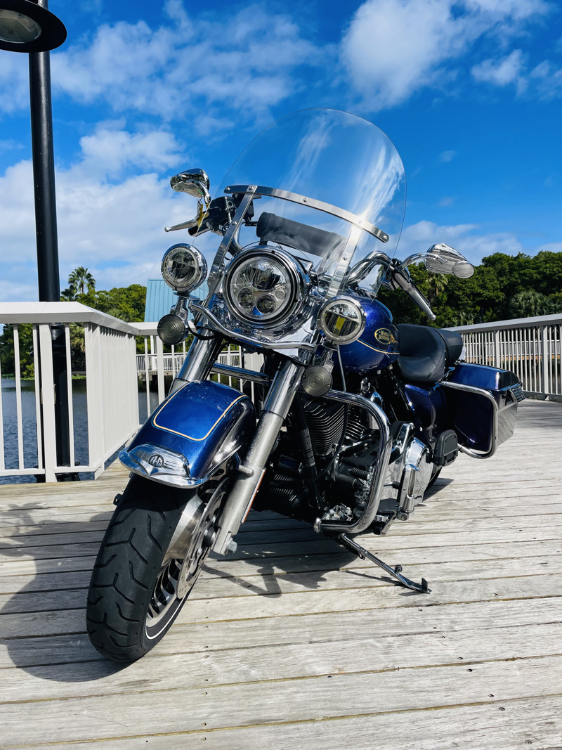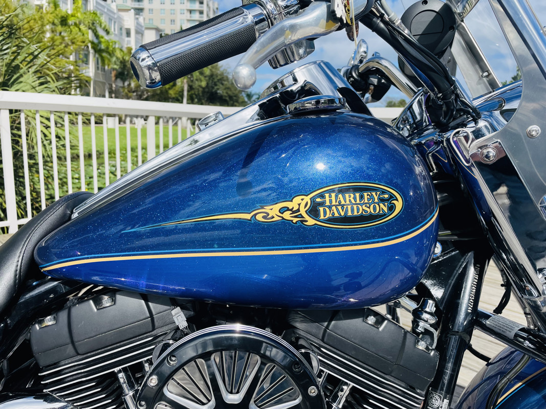 Harley Davidson’s Road King is the smallest of the big touring bikes. The main reason why Police Departments use this bike as their choice of police bikes is the agility yet the comfort and ability to carry heavy equipment to do their work. It is the perfect in between when you do not want to take out the big and bulky Street Glides or Electra Glides, yet if you want to go on a trip add a tour pack easy to the quick-connects and you are riding with all the trunk space you need.