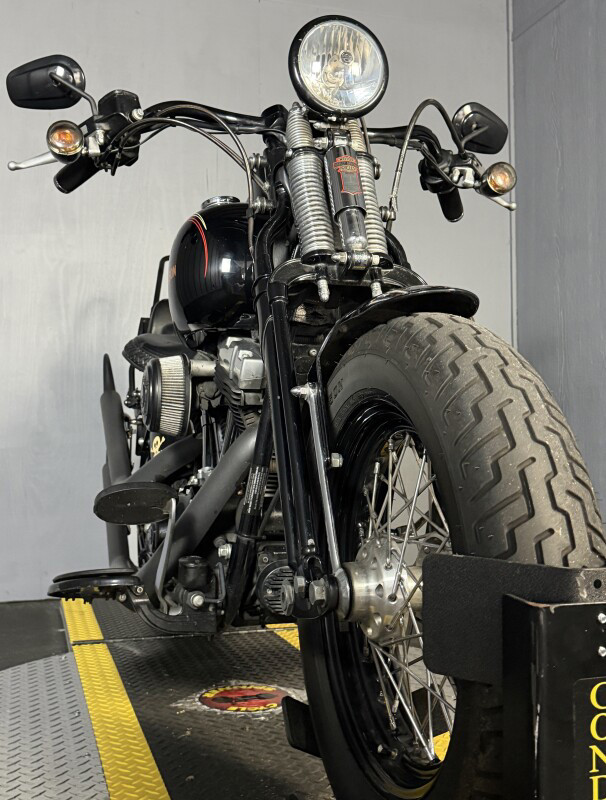If riding a Harley-Davidson motorcycle is a timeless experience, then the new FLSTSB Softail Cross Bones almost makes the clock stand still. The dark Cross Bones has the profile of an authentic custom bobber, a stripped-down-and-chopped custom with raw finishes and loads of attitude. Cross Bones leads with the gloss black Springer front end and follows with other post-war styling cues, including a gloss-black air cleaner cover, sprung solo seat, half-moon rider footboards and chopped front fender. The adjustable two-position pan-style saddle rides at a height of 676mm. The rider grips arm-high gloss black mini ape hanger handlebars. The gloss black oil tank features a new Willie G.-designed skull graphic. The bright chrome straight over/under exhaust with chrome dual mufflers contrasts with the dark frame and powertrain.