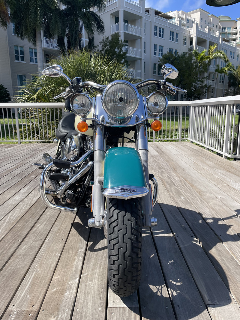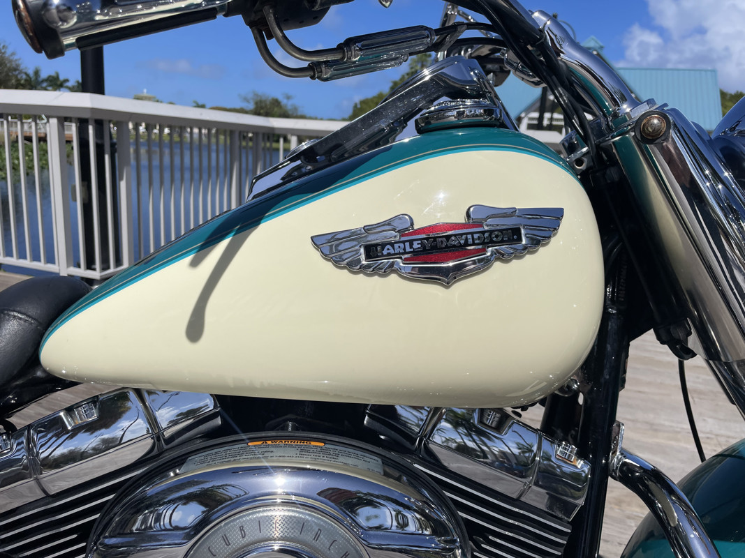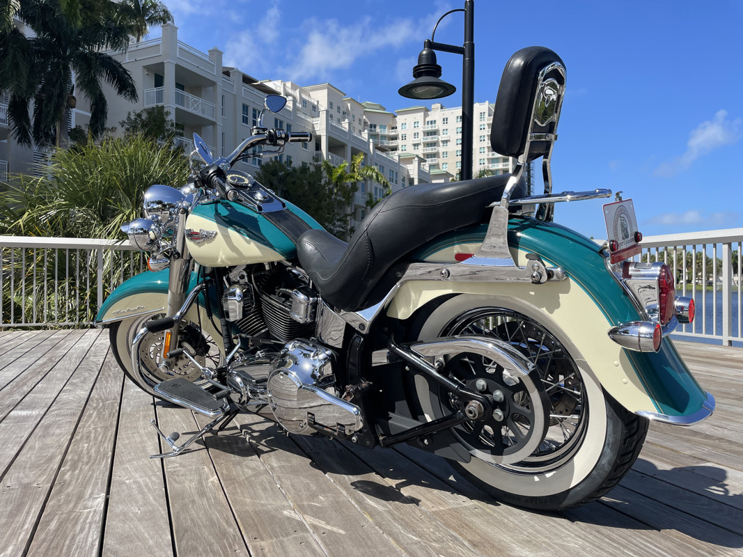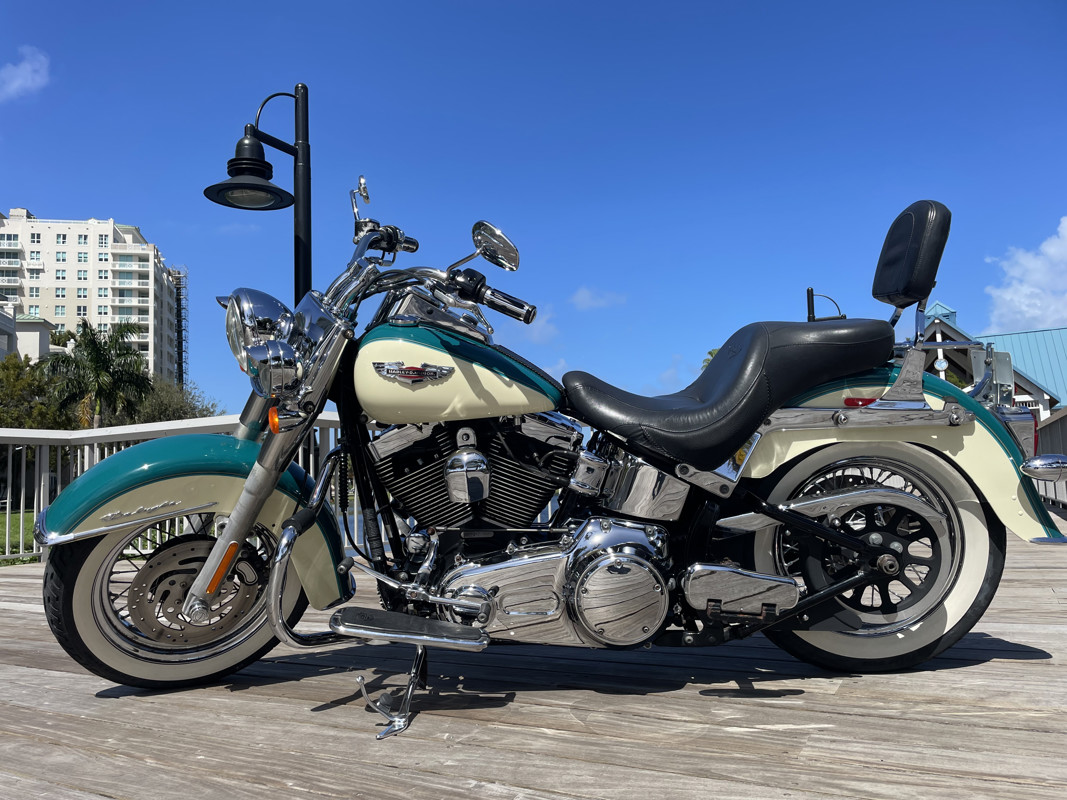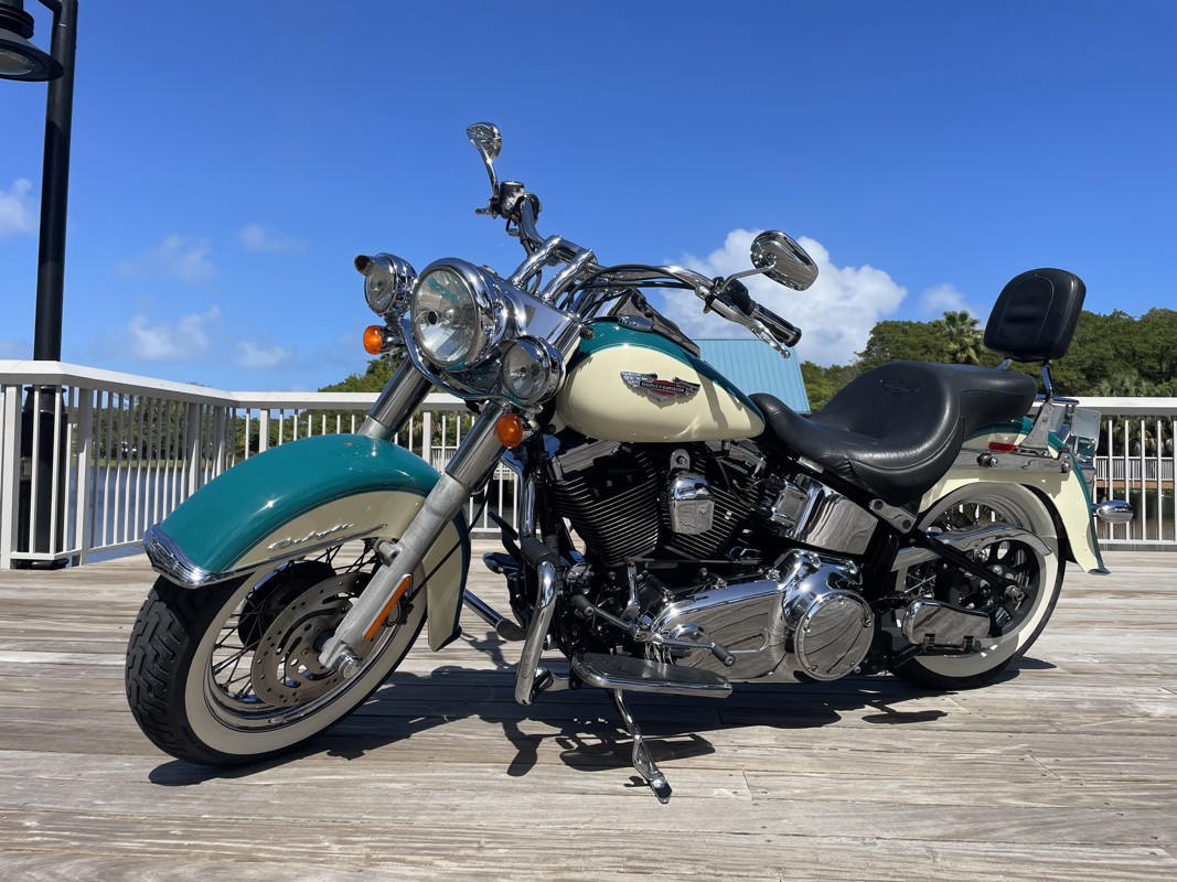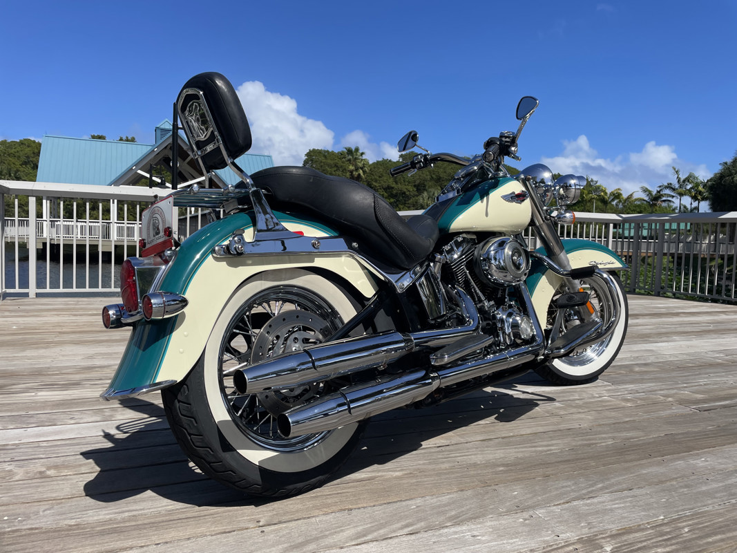 Deluxe has become one of the most popular models in the Harley used market lineup. The classic lines of this bike show off the history of Harley and how beautiful bikes were when adding chrome was still fashionable. This bike is no exception. Finished in Deep Turquoise with Antique White. Stunning and classic looks. It is a true testament that you can ride 80K miles and the bike still looks like showroom condition.