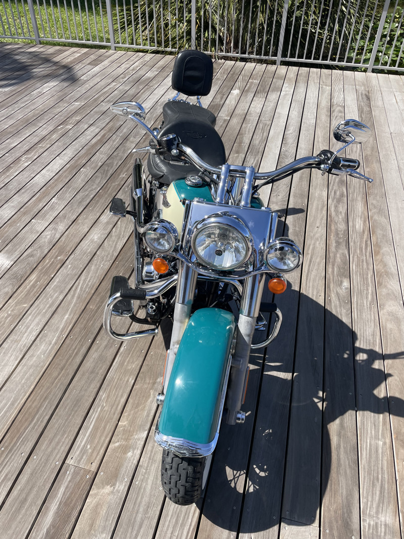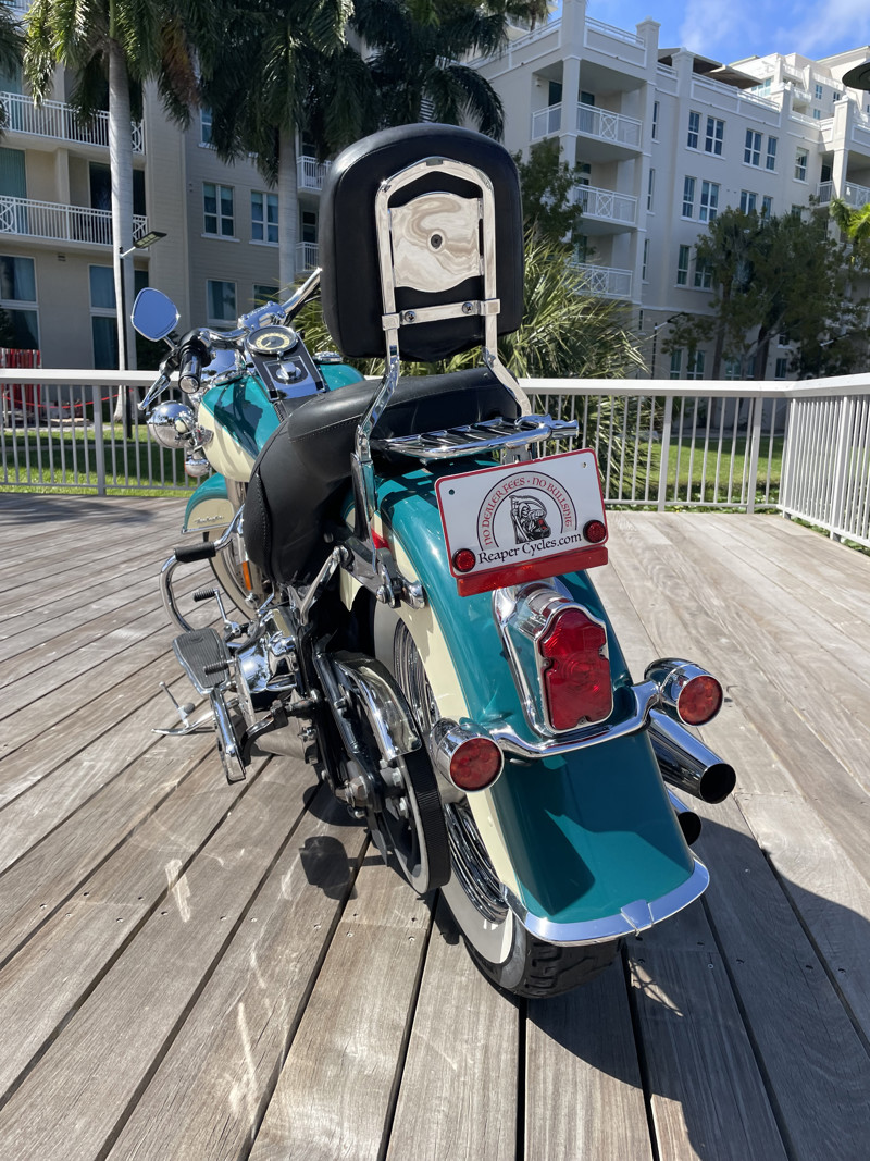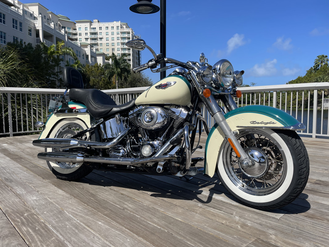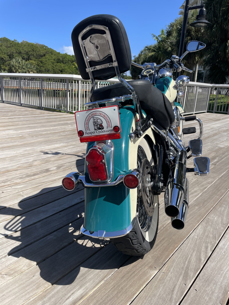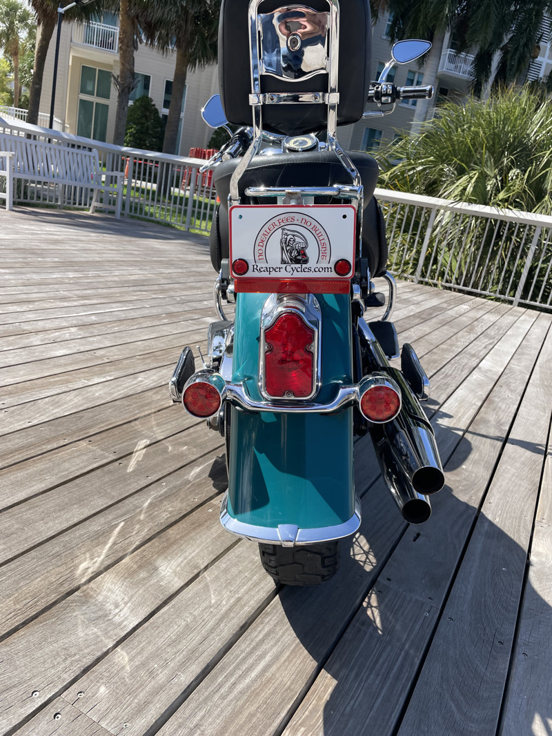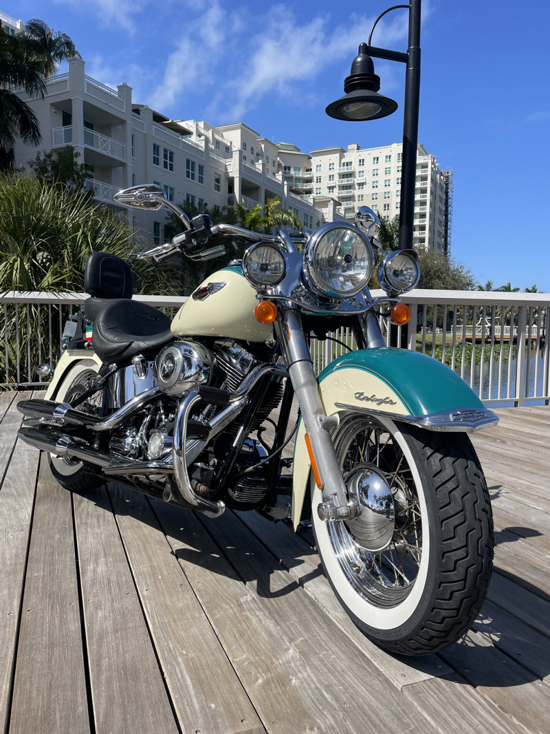 Deluxe has become one of the most popular models in the Harley used market lineup. The classic lines of this bike show off the history of Harley and how beautiful bikes were when adding chrome was still fashionable. This bike is no exception. Finished in Deep Turquoise with Antique White. Stunning and classic looks. It is a true testament that you can ride 80K miles and the bike still looks like showroom condition.