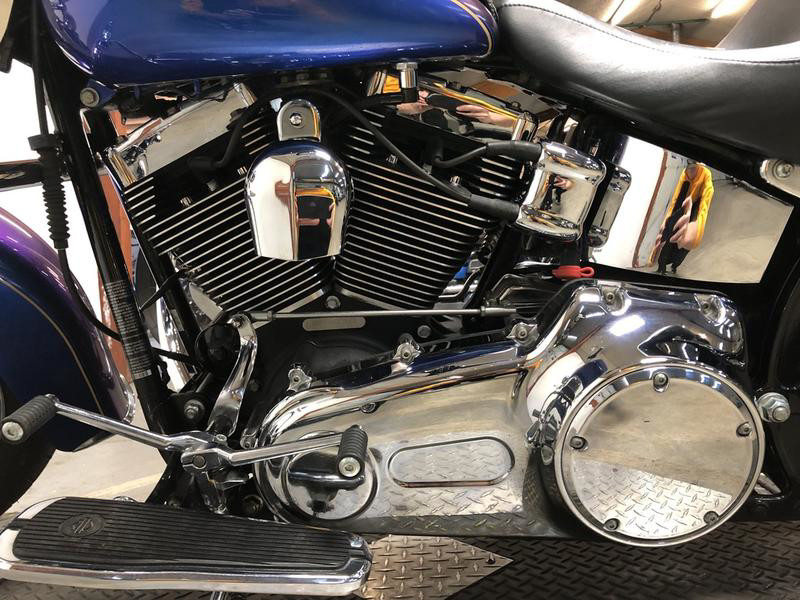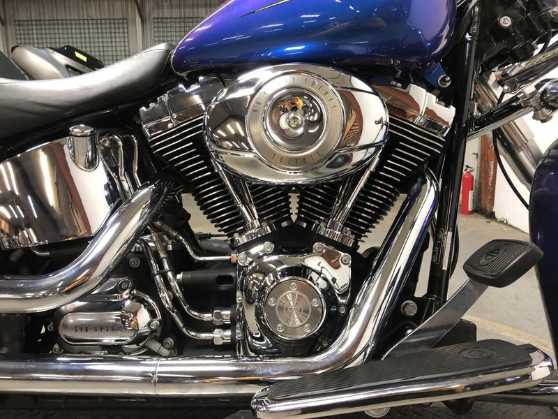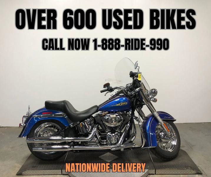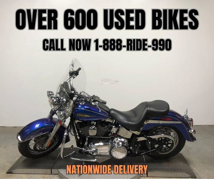 USED HARLEY SOFTAIL DELUXE FOR SALE IN HARD TO FIND COLOR "FLAME BLUE PEARL"! THIS IS ONE SHARP MOTORCYCLE. NICE, CLEAN BIKE WITH QUICK DETACHABLE WINDSHIELD, WINDSHIELD BAG, FLOOR BOARDS, CHROME-LOADED WHEELS, AND TONS OF CHROME ON THE MOTOR. JUST SERVICED AT THE DEALERSHIP, INSPECTED, ALL FLUIDS CHANGED, RUNS STRONG, EVERYTHING WORKS, NEEDS NOTHING! BUY WITH CONFIDENCE! STAND OUT FROM THE CROWD!