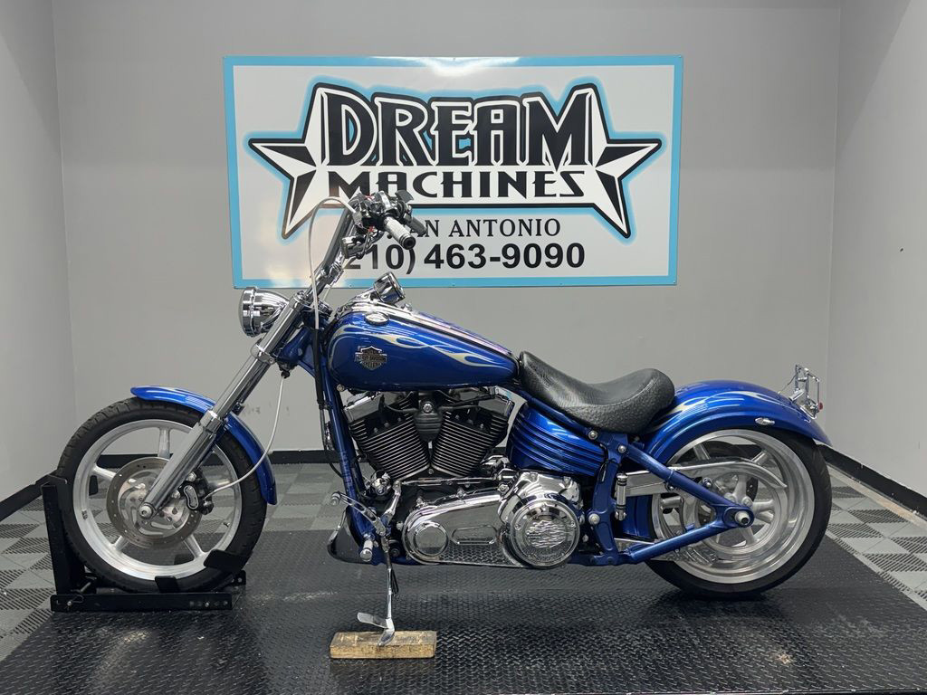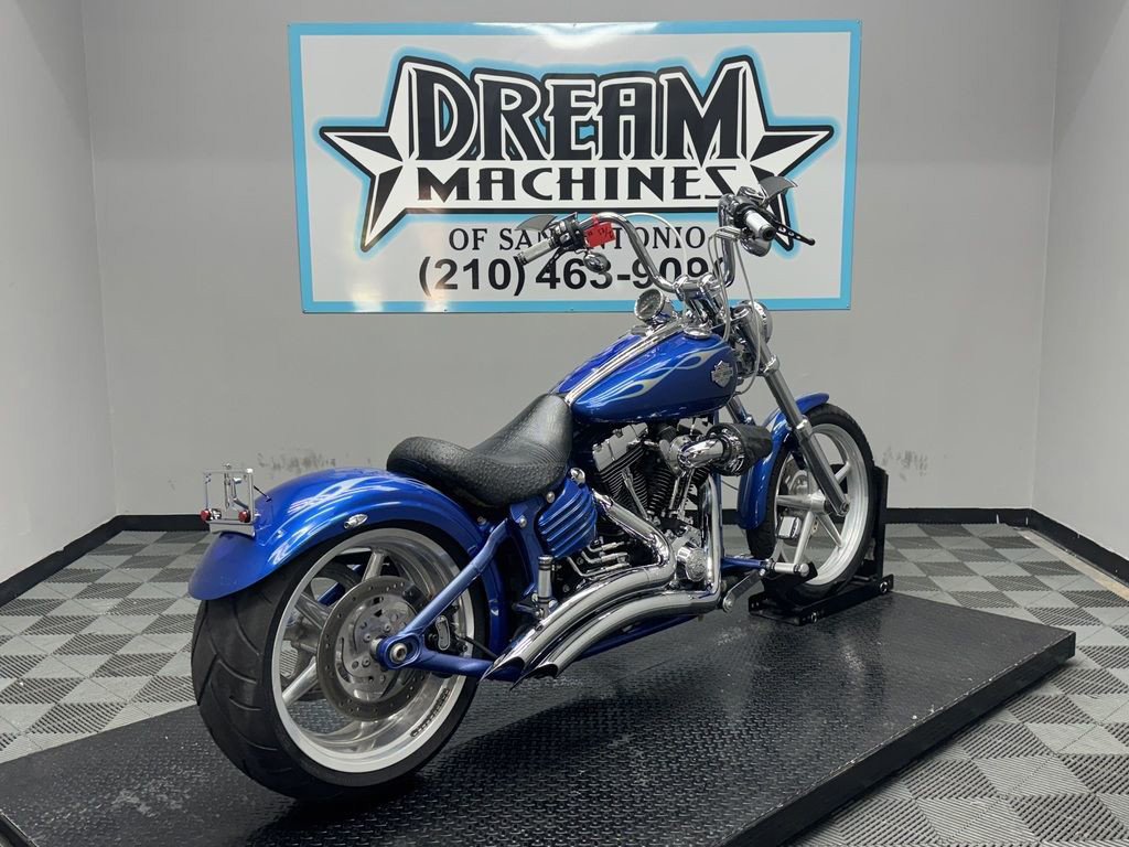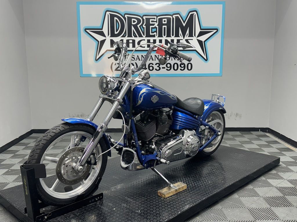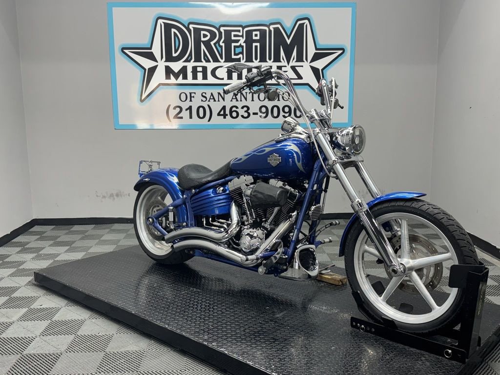 *BOOK VALUE IS $9,042 SHIPPING, LEASING, FINANCING AND EXTENDED WARRANTY MAY BE AVAILABLE! YOU ARE LOOKING AT A 2009 HARLEY DAVIDSON SOFTAIL ROCKER C (FXCWC) WITH 25,765 MILES ON IT. IT IS PACIFIC BLUE PEARL IN COLOR AND POWERED BY A 1584CC (96") FUEL INJECTED ENGINE AND 6 SPEED TRANSMISSION. THE BIKE COMES WITH 2 KEYS, 1 FOB, AND FACTORY SECURITY SYSTEM. THERE ARE SOME EXTRAS ON THE BIKE WHICH INCLUDE VANCE & HINES BIG RADIUS EXHAUST ($879.95), SCREAMIN' EAGLE HI-FLO AIR CLEANER ($299.95), LED HEADLIGHT ($399.95), APE HANGER BARS ($289.95), GRIPS ($79.95), MIRRORS ($89.95), SWITCHES ($28.95), AND MASTER CYLINDER COVER ($39.95). THERE ARE NO SCRATCHES, DENTS, OR DINGS THAT I CAN FIND WITH THE EXCEPTION OF SMALL SCRATCHES ON THE FRONT FENDER, TANK, AND REAR FENDER. THE CHROME AND ALUMINUM HAVE A SMALL IMPRESSION ON THE DASH AND FLAKING ON THE MASTER CYLINDER. THE TIRES HAVE GOOD TREAD LEFT ON THEM.