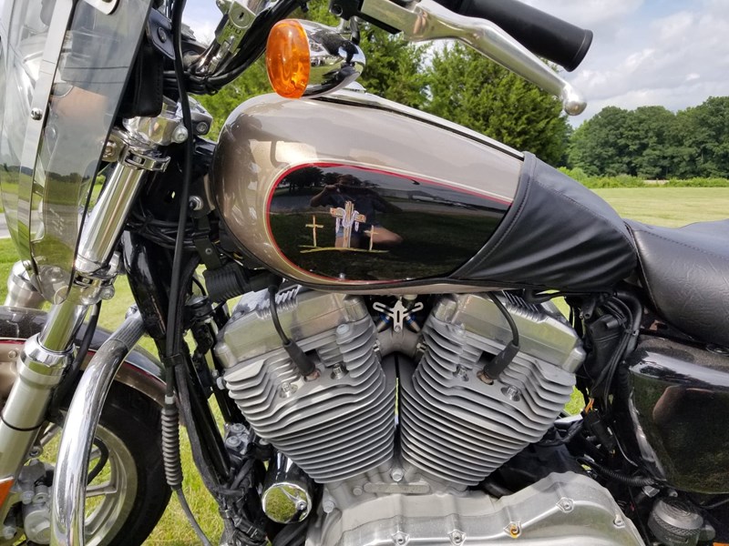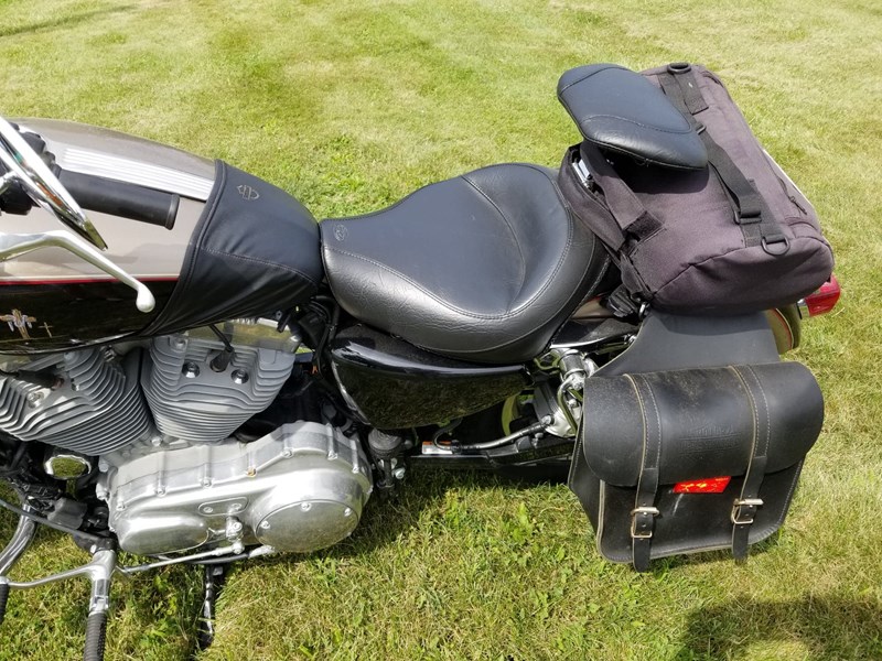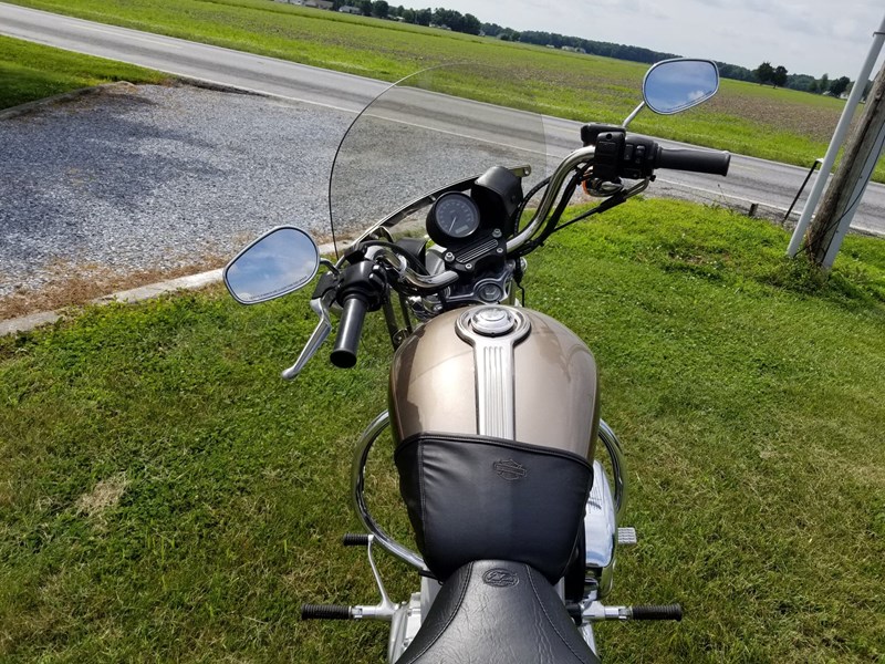 Removeable windshield; custom leather sunglass case; custom leather EZ pass holder; digital gear indicator; custom big gas tank with locking gas cap; Mustang vintage solo seat with removal back rest; removeable luggage rack; custom leather saddle bags; custom lockable license plate holder; rear turn signal combined with brake light; pulsating front head light; front belt pulley changed to 1200; Road king bike cover; Battery tender plug in; custom made front elephant ears; old small tinset and stock single seat go with bike. Many extras parts included.