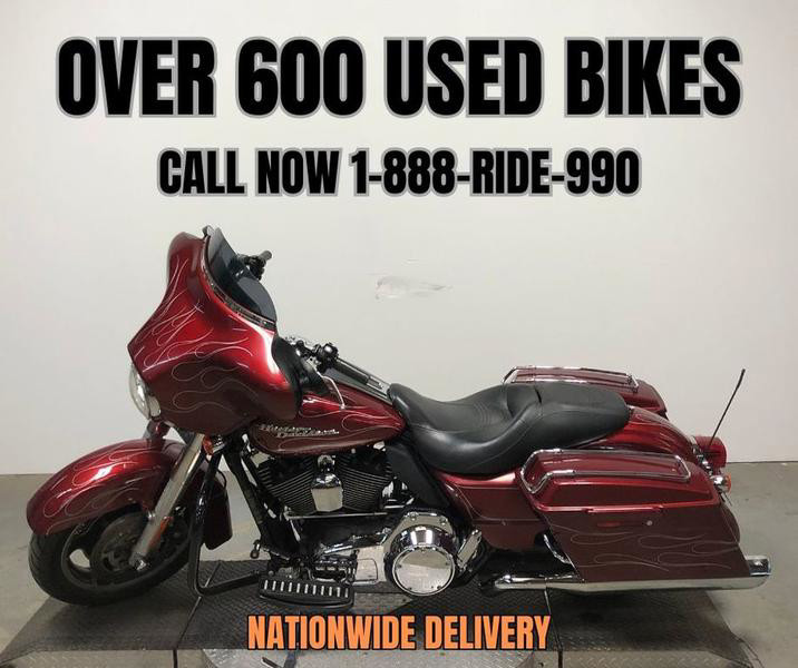 USED HARLEY STREET GLIDE FOR SALE WITH ONLY 15,196 MILES! CLEAN, CLEAN, CLEAN! CANDY APPLE RED PAINT WITH GHOST FLAMES! RUNS STRONG, STAGE 1 KIT, SCREAMIN' EAGLE INTAKE, AND THE VANCE AND HINES EXHAUST SOUNDS GREAT! INCLUDES BILLET FLOOR BOARDS AND LOWER CONTROLS! JUST SERVICED AT DEALERSHIP, INSPECTED, ALL FLUIDS CHANGED, EVERYTHING WORKS, NEEDS NOTHING! BUY WITH CONFIDENCE! GREAT STREET GLIDE FOR THE MONEY!