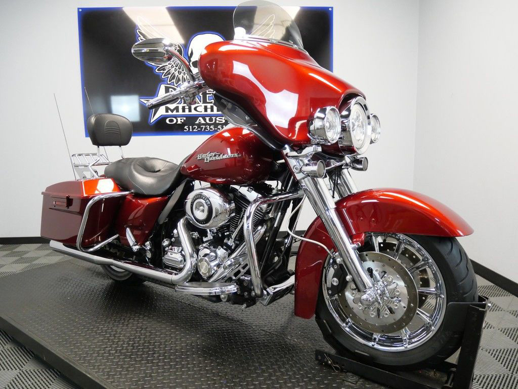 *BOOK VALUE IS $9,410 SHIPPING, LEASING, FINANCING AND EXTENDED WARRANTY MAY BE AVAILABLE! YOU ARE LOOKING AT A 2009 HARLEY DAVIDSON STREET GLIDE (FLHX) WITH 51,101 MILES ON IT. IT IS CANDY RED SUNGLO IN COLOR AND POWERED BY A 1584CC (96") FUEL INJECTED ENGINE AND 6 SPEED TRANSMISSION. THE BIKE COMES WITH ABS BRAKES, CRUISE CONTROL, 1 KEY, 1 FOB, AND FACTORY SECURITY SYSTEM. THERE ARE SOME EXTRAS ON THE BIKE WHICH INCLUDE VANCE & HINES SLIP-ON MUFFLERS ($424.95), STAGE 1 AIR INTAKE ($139.95), AQUATIC AV HEAD UNIT ($399.95), PASSENGER BACKREST ($264.95), LUGGAGE RACK ($199.95), PAINTED INNER FAIRING ($599.95), ROULETTE FRONT WHEEL ($749.95), FUEL DOOR ($39.95), HEATED GRIPS ($319.95), MIRRORS ($119.95), SWITCH HOUSINGS ($149.95), MASTER CYLINDER COVER ($39.95), BRAKE/CLUTCH PERCH ($399.95), BRAKE/CLUTH LEVER ($79.95), SHIFTER LINKAGE ($99.95), WINDSHIELD MOLDING ($44.95), LED HEADLIGHT ($524.95), AND LED PASSING LAMPS ($384.95). THERE ARE NO SCRATCHES, DENTS, OR DINGS THAT I CAN FIND WITH THE EXCEPTION OF SMALL SCRATCHES ON THE FRONT FENDER, FRONT FAIRING, AND RIGHT SADDLEBAG. THE CHROME AND ALUMINUM ARE IN GOOD CONDITION. THE TIRES HAVE GOOD TREAD LEFT ON THEM.