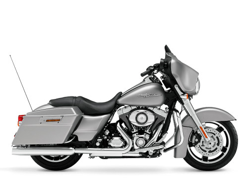A stylishly stripped-down dresser, the Street Glide features lowered rear suspension, a smoked mini-wind deflector, and a stylish trim at the bottom of the rear fender for a low, lean profile. A traditional “batwing” fairing holds the 40-watt Advanced Audio System by Harman-Kardon. A stretched, chrome fuel tank console and Streamliner footboards, brake pedal and passenger pegs finish the custom treatment. Newly restyled black slotted disc cast aluminium wheels are exclusive to the Street Glide.
