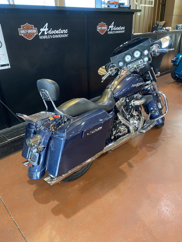 A stylishly stripped-down dresser, the Street Glide features lowered rear suspension, a smoked mini-wind deflector, and a stylish trim at the bottom of the rear fender for a low, lean profile. A traditional “batwing” fairing holds the 40-watt Advanced Audio System by Harman-Kardon. A stretched, chrome fuel tank console and Streamliner footboards, brake pedal and passenger pegs finish the custom treatment. Newly restyled black slotted disc cast aluminium wheels are exclusive to the Street Glide.