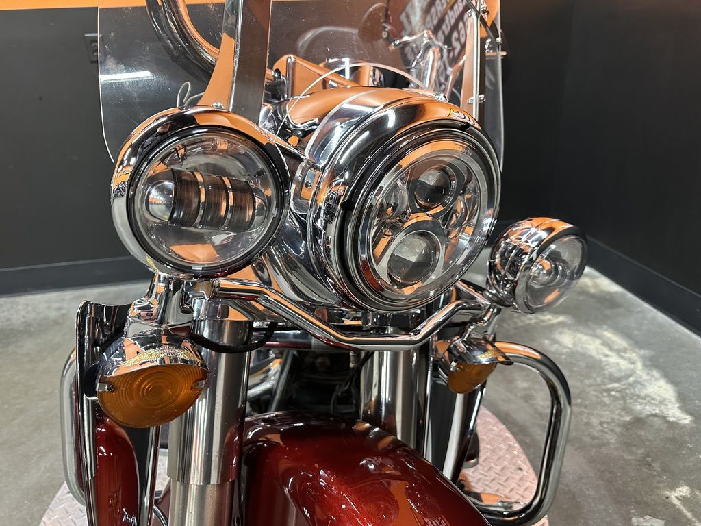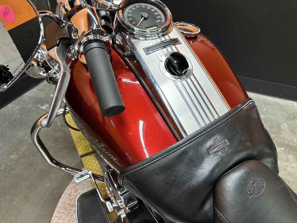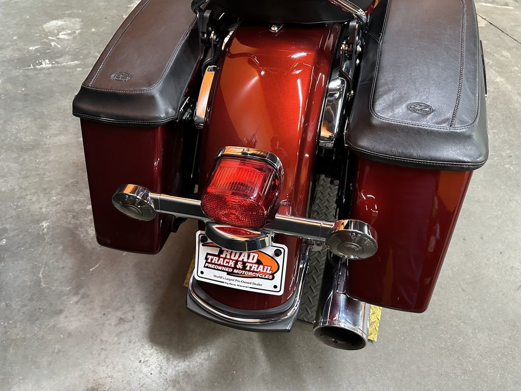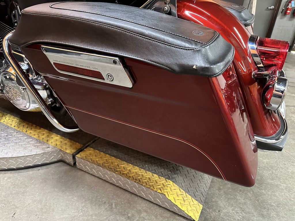 ONLY 49,501 MILES, VANCE AND HINES 2 INTO 1 PRO PIPE EXHAUST, HIGH FLOW INTAKE, CHROME HANDLEBAR CONTROLS, MUSTANG SEAT, RIDERS BACKREST, DOCKING HARDWARE, QUICK DETACHABLE BACKREST, MUSTANG SADDLEBAG LID COVERS, HD TANK BRA, WINDSHIELD, CRASHBAR, UPGRADED GRIPS, PEGS, FOOT CONTROLS, HORN COVER, DERBY COVER, TIMING COVER, AND INTAKE INLAY, LED HEADLIGHT AND SPOT LIGHTS, HD CHROME LOWER WIND DEFLECTORS, ABS, CRUISE CONTROL, 96" MOTOR, AND 6 SPEED TRANS! CLEAN AND LOADED CLASSIC BAGGER! GREAT COLOR! THERE IS A DENT UNDER THE TANK BRA ON THE RIGHT SIDE.