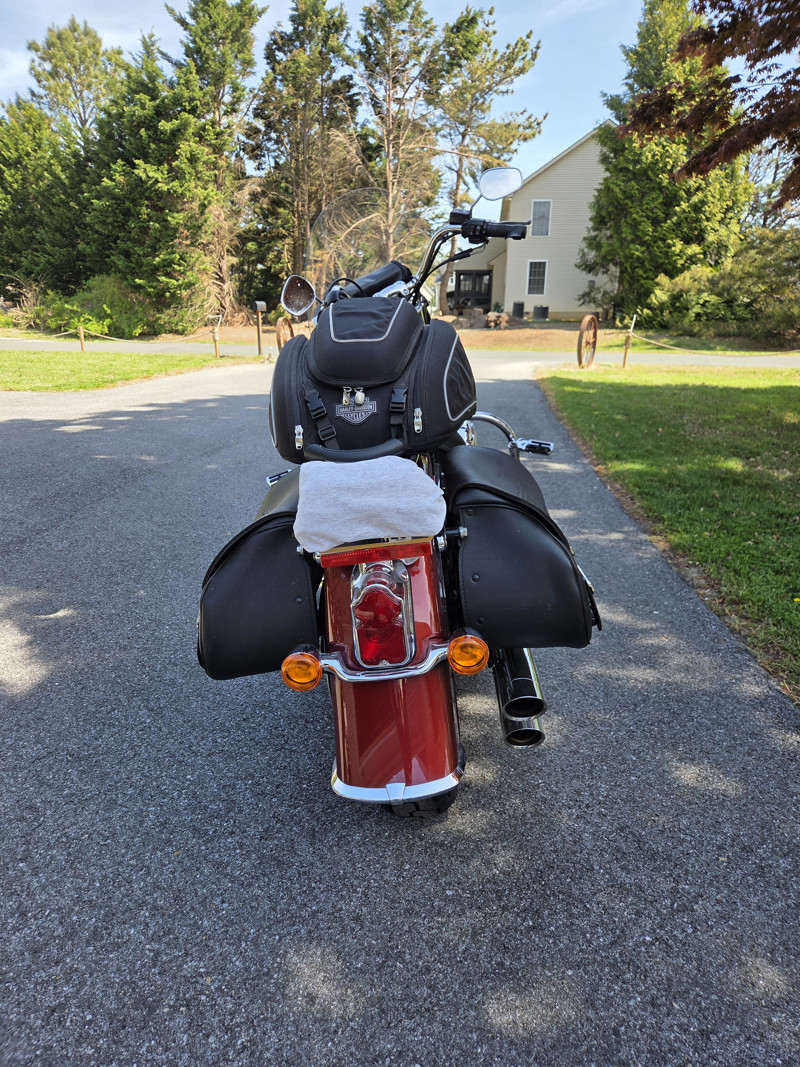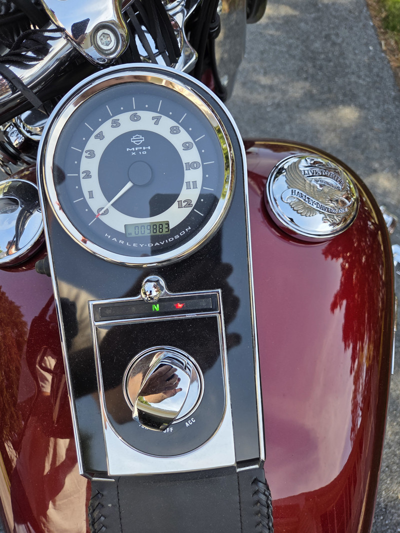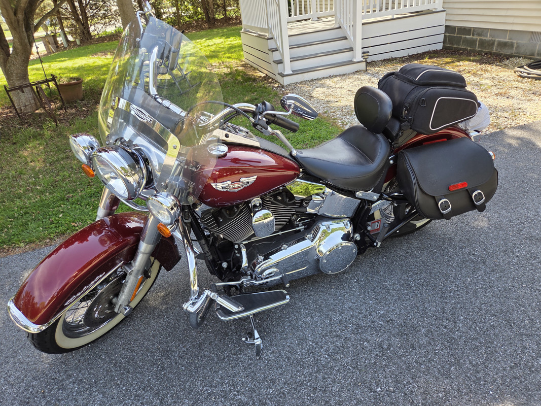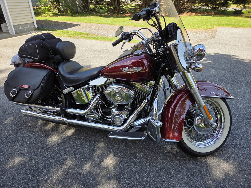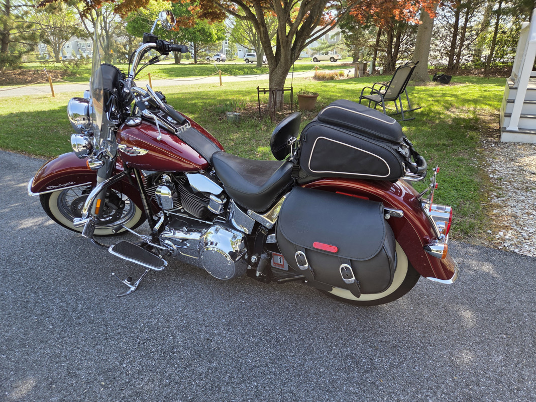 This is a one-owner low milage Softail Deluxe that has been garage kept since the day we purchased it new. Bike was lowered when new at the Harley dealer. Premium Mustang seat with adjustable back rest. Set up for a shorter person but can easily be put back to standard factory specs. 96 cu in fuel injected, 6 speed. Genuine Harley accessories include, windshield & storage bag, engine guard with pegs, saddle bags and luggage rack bag. Great sounding Cobra mufflers. We have the original seat, exhaust, handle bars and owners manual. Well maintained, no issues! Just passed DE inspection.