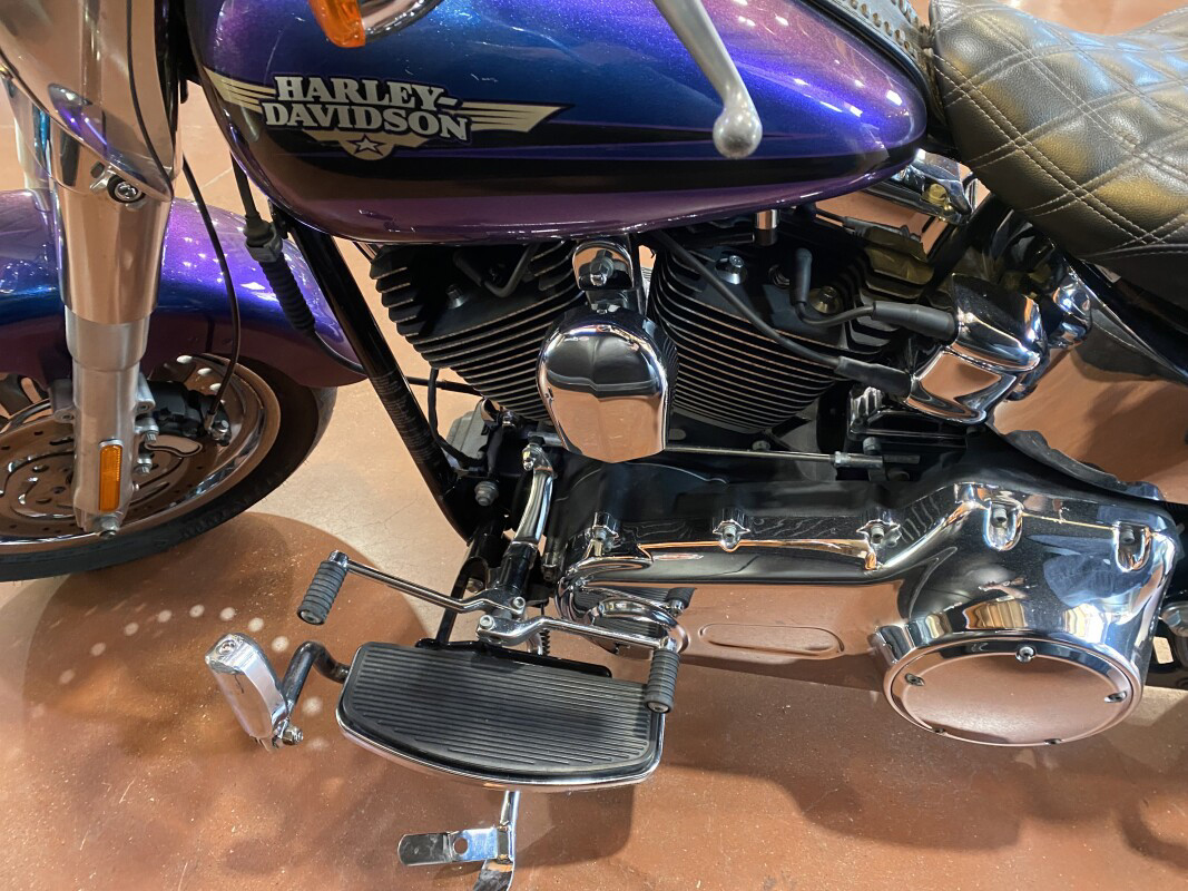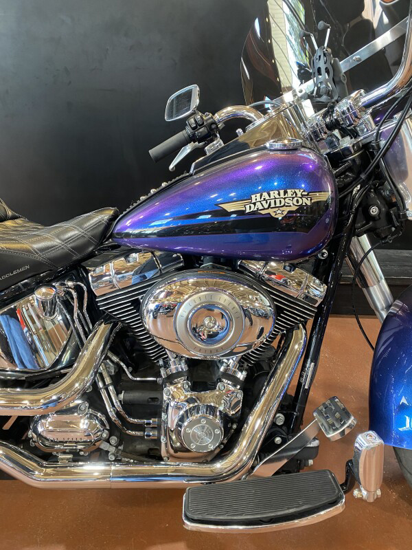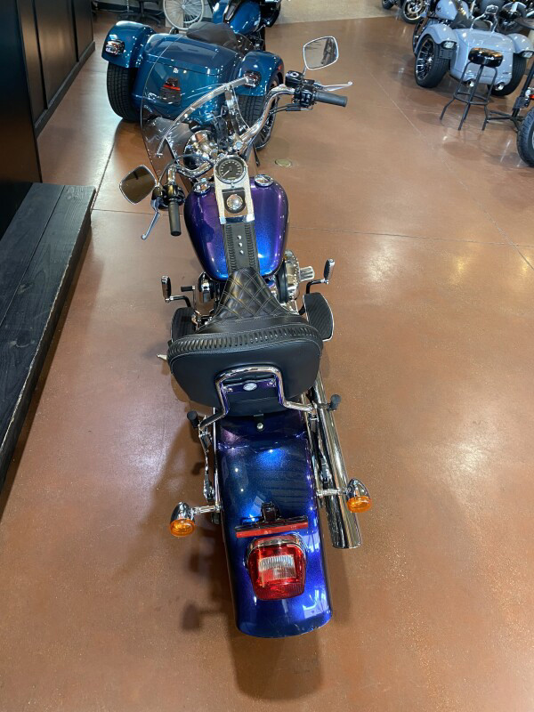 The Softail rear suspension mimics the clean lines of a vintage hardtail frame but offers the comfort of a modern suspension that is hidden under the chassis. The rigid powertrain allows tight packaging of the engine and frame and creates a solid connection between the rider and the power that moves the motorcycle.