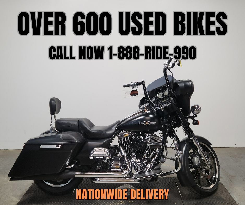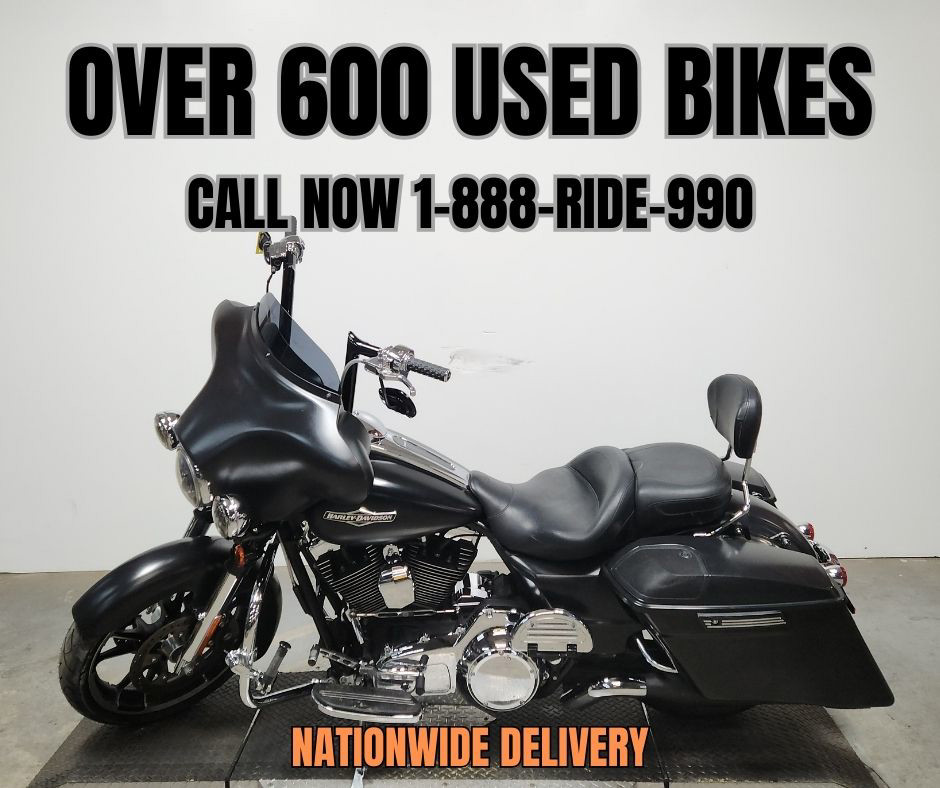 USED HARLEY STREET GLIDE FOR SALE IN MATTE BLACK! HAS WRAP AROUND FRONT FENDER, CHROME FRONT END, DAYMAKER HEADLIGHT, HIGHWAY PEGS, QUICK DETACHABLE BACKREST, SPEAKERS IN SADDLEBAGS, BLUETOOTH STEREO, SCREAMING EAGLE INTAKE, AND MORE! JUST SERVICED AT DEALERSHIP, INSPECTED, ALL FLUIDS CHANGED, AND RUNS STRONG! GREAT BIKE FOR THE MONEY!