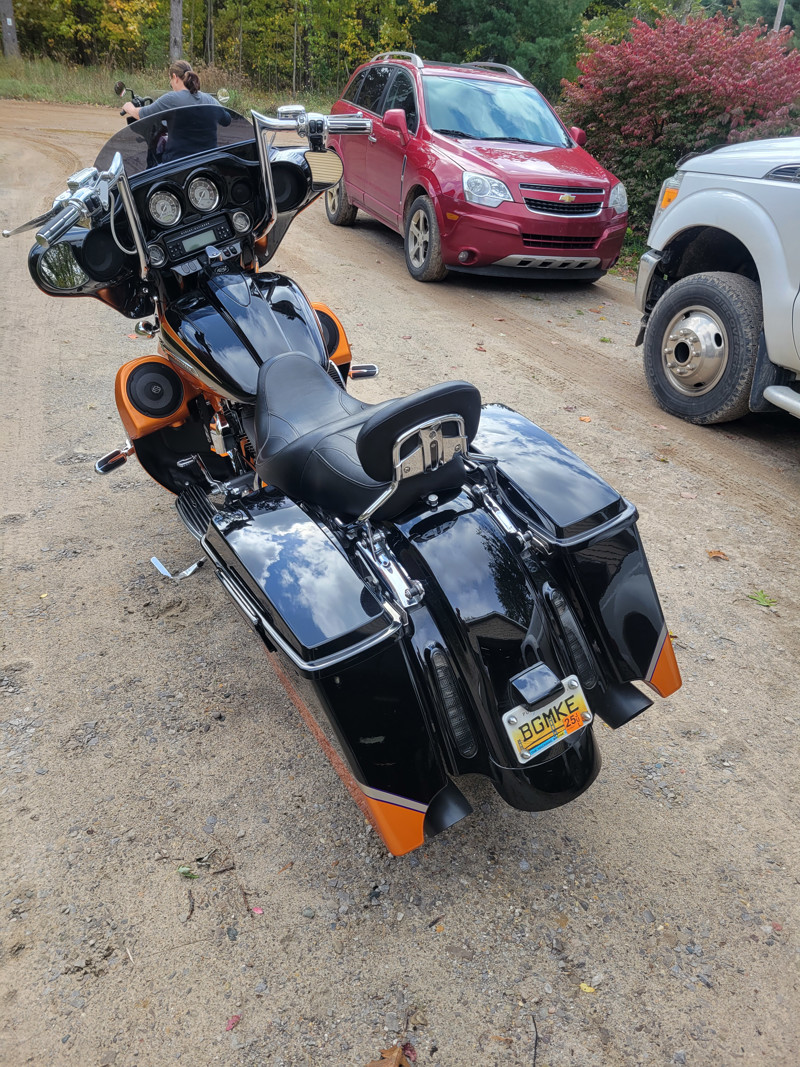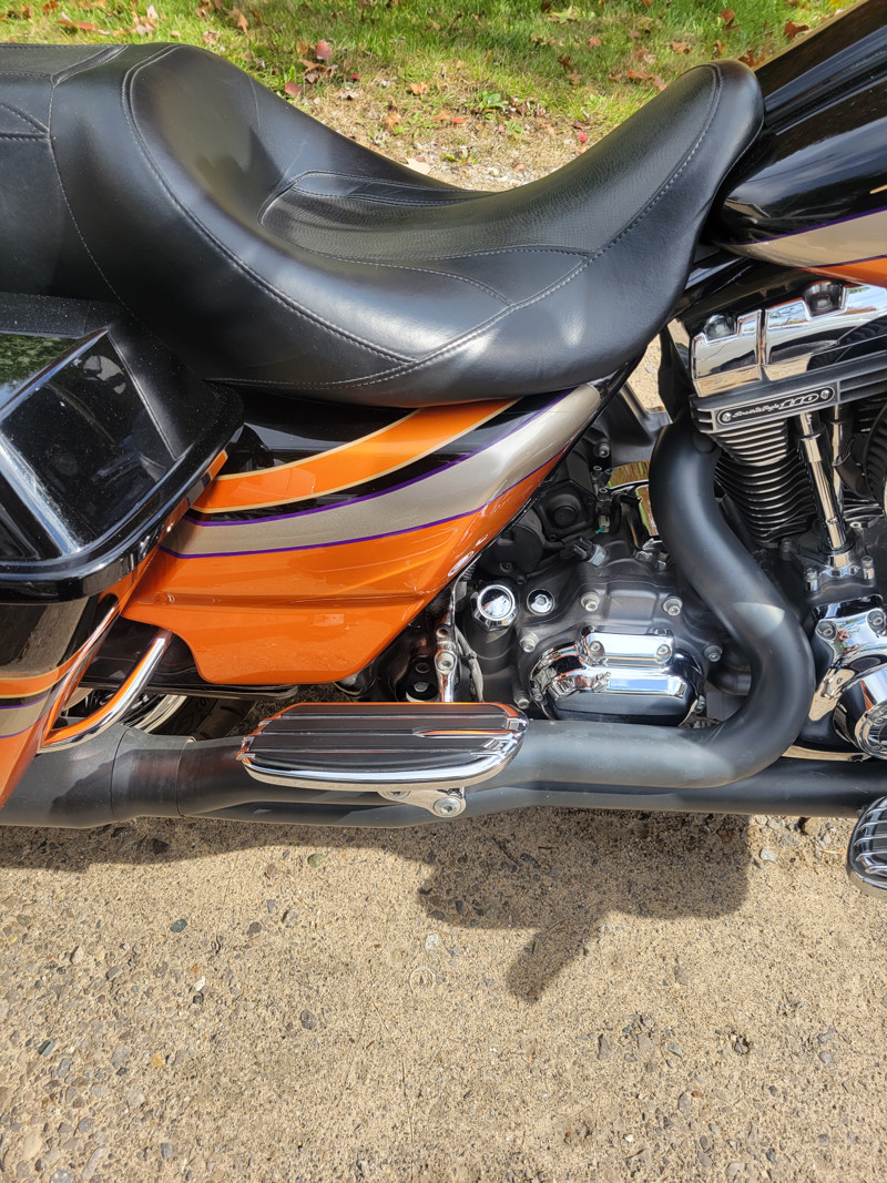 2011 Harley Davidson CVO Street Glide. 25080 miles, D&D Boarzilla 2-1 exhaust with ghost pipe. S&S 585 cams, S&S high compression pistons(10.5-1) Powervision tuned. Dynoed at 124trq/116hp. Work done by Mel at The Throttle Shop, Sidney MI. Matching tour pack, Harley luggage rack bag, Harley bags for saddle bags. Harley Hammock seat, Mustang solo seat and original seat. LED headlight, still have original, adjustable passenger floorboards. Nice ride, ride anywhere!