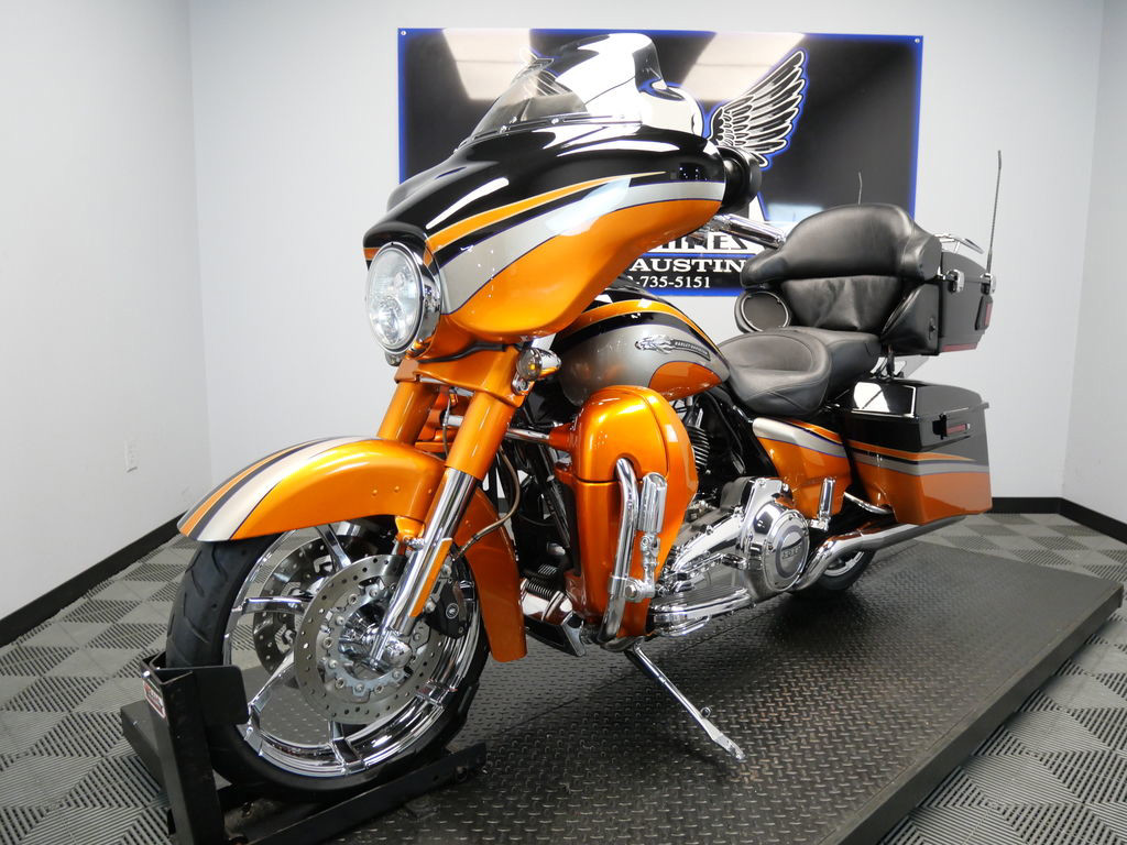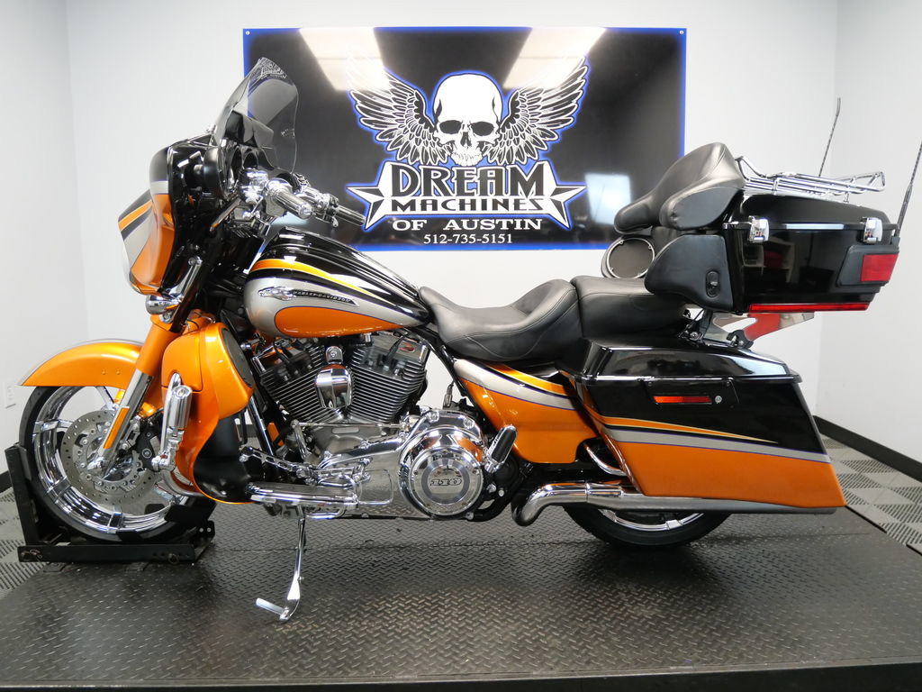SHIPPING, LEASING, FINANCING AND EXTENDED WARRANTY MAY BE AVAILABLE! YOU ARE LOOKING AT A 2011 HARLEY DAVIDSON SCREAMIN' EAGLE CVO STREET GLIDE (FLHXSE2) WITH 9,949 MILES ON IT. IT IS BLACK DIAMOND AND INFERNO ORANGE IN COLOR AND POWERED BY A 1803CC (110") FUEL INJECTED ENGINE AND 6 SPEED TRANSMISSION. THE BIKE COMES WITH ABS BRAKES, CRUISE CONTROL, HIGHWAY PEGS, 2 KEYS, 1 FOB, AND FACTORY SECURITY SYSTEM. THERE ARE SOME EXTRAS ON THE BIKE WHICH INCLUDE VANCE & HINES SLIP-ON MUFFLERS ($699.95), VANCE & HINES POWER DUAL HEADERS ($1,249.95), TOUR PAK ($1,599.95), 2 POCKET WINDSHIELD POUCH ($67.95), AND MUSTANG SEAT ($629.95). THERE ARE NO SCRATCHES, DENTS, OR DINGS THAT I CAN FIND WITH THE EXCEPTION OF TOUCH UPS ON THE LEFT LOWER FAIRING AND RIGHT SADDLEBAG. THE CHROME AND ALUMINUM ARE IN GOOD CONDITION. THE TIRES HAVE GOOD TREAD LEFT ON THEM.