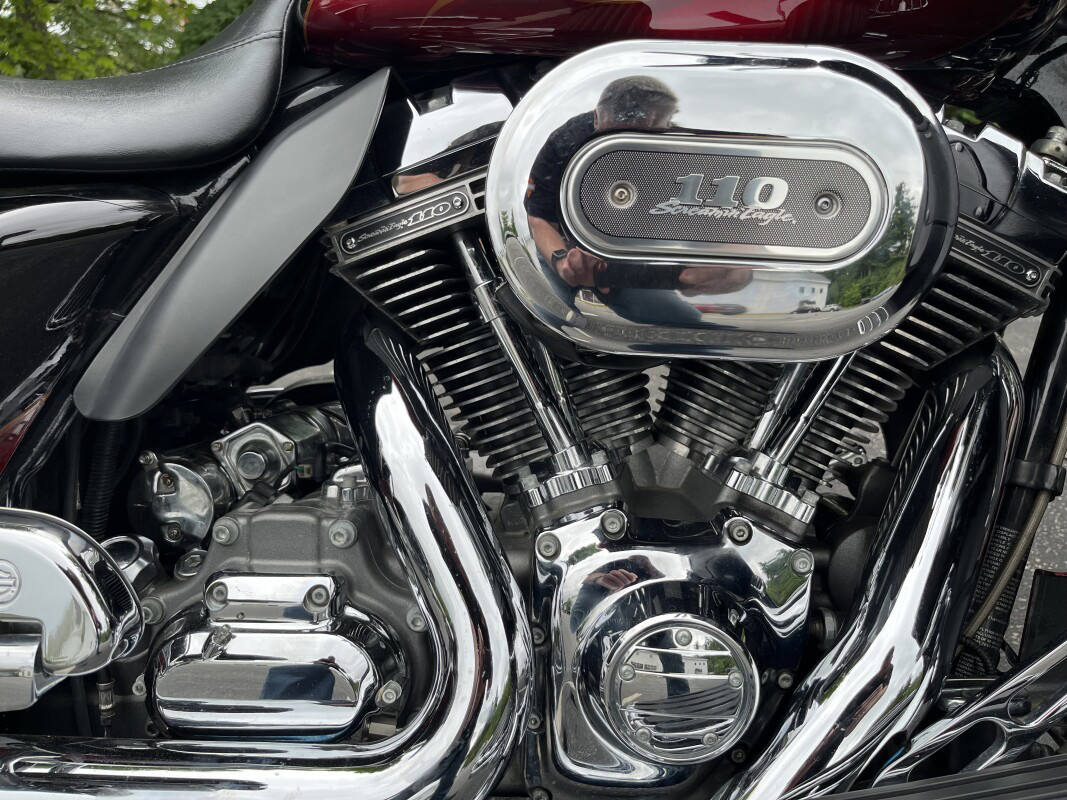 The 2011 Harley-Davidson CVO Ultra Classic Electra Glide is a high end performance motorcycle with Screamin' Eagle power that gives you the ultimate in premium featured touring. This bike is powered with a Harley Screamin' Eagle engine. This Twin Cam engine provides 110 cubic inches of power, a low cruising rpm, and lots of low end torque. Setting this bike's CVO Screamin' Eagle engine apart from the rest is the granite powertrain.