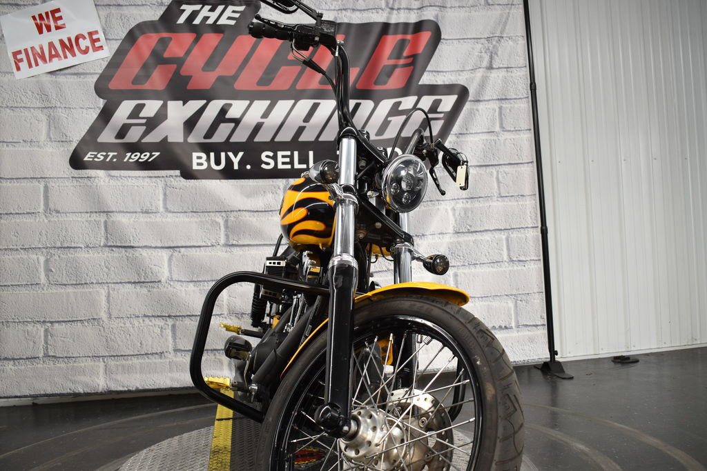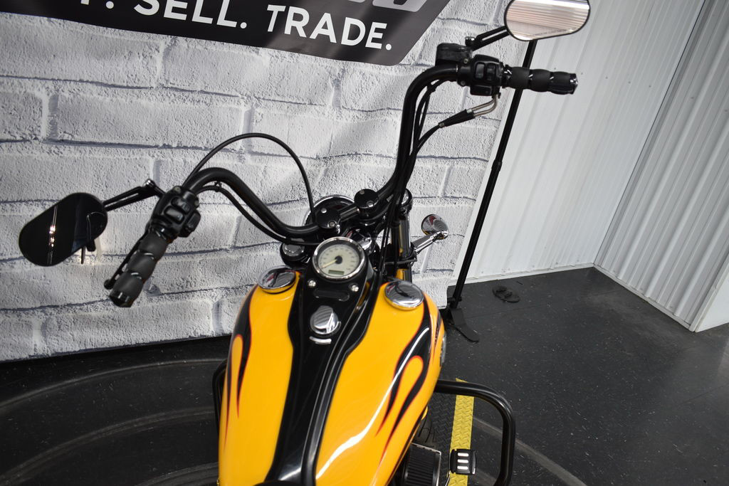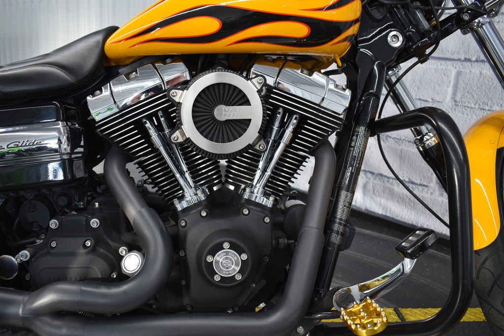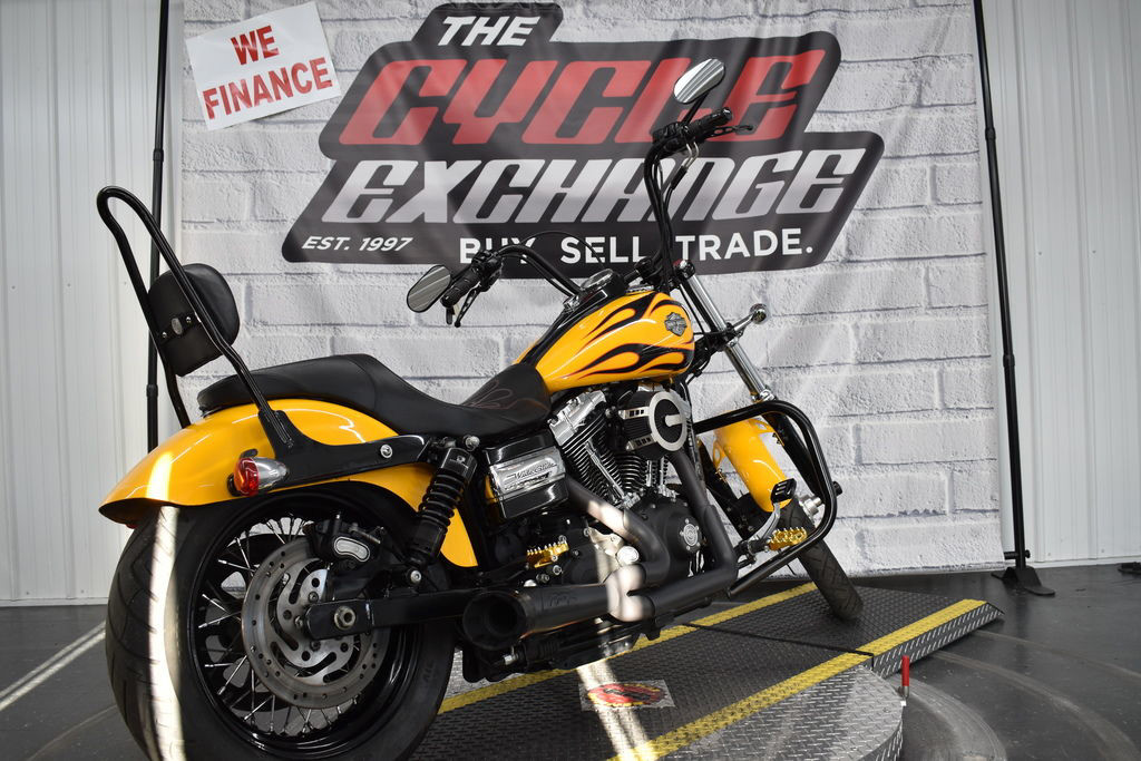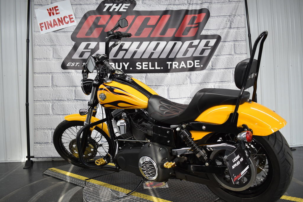 The 2011 Harley-Davidson® Dyna® Wide Glide® FXDWG is full of classic chopper motorcycle style. In front is a long and raked out fork with a 21 inch wheel, giving this model quintessential chopper motorcycle style. And in the back, the Harley® Wide Glide® features a side mounted license plate for added custom chopper motorcycle style. Want even more factory custom style on your chopper motorcycles? This bike also features an optional classic flame design on the fuel tank. Select the flames on the Harley-Davidson® Wide Glide® chopper motorcycle for a factory custom look at an affordable Harley® price.