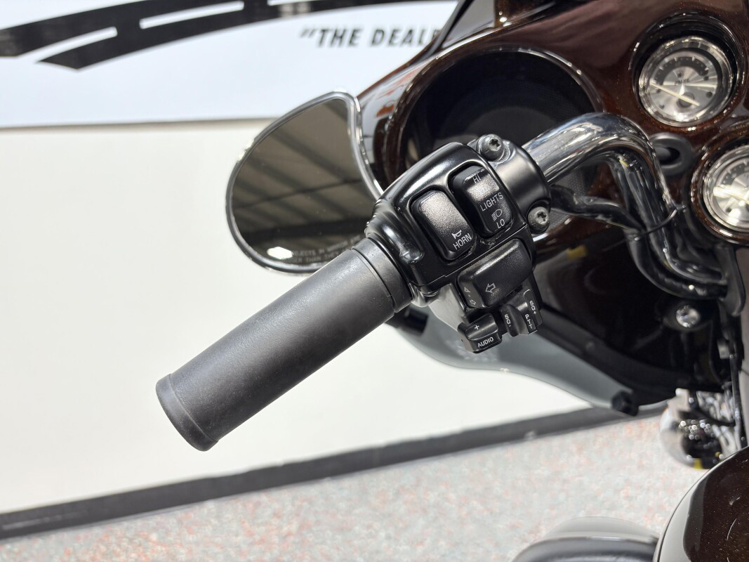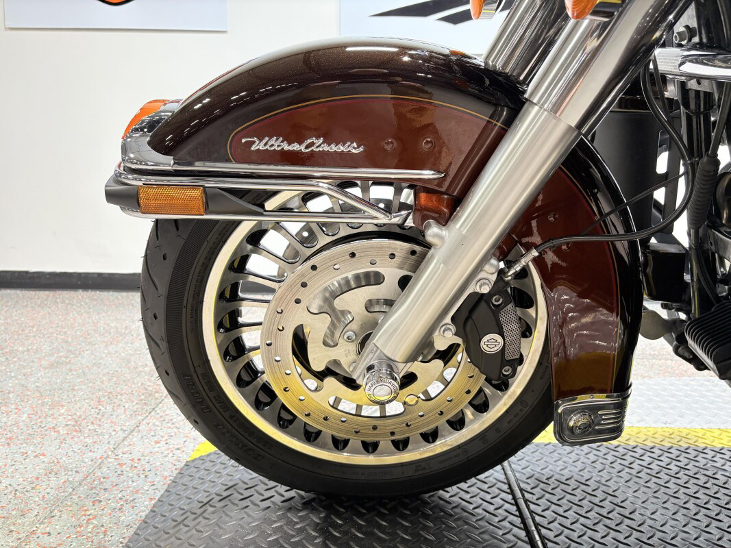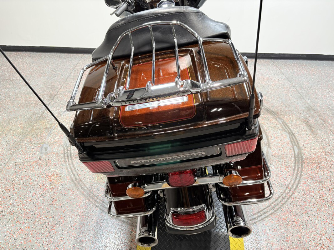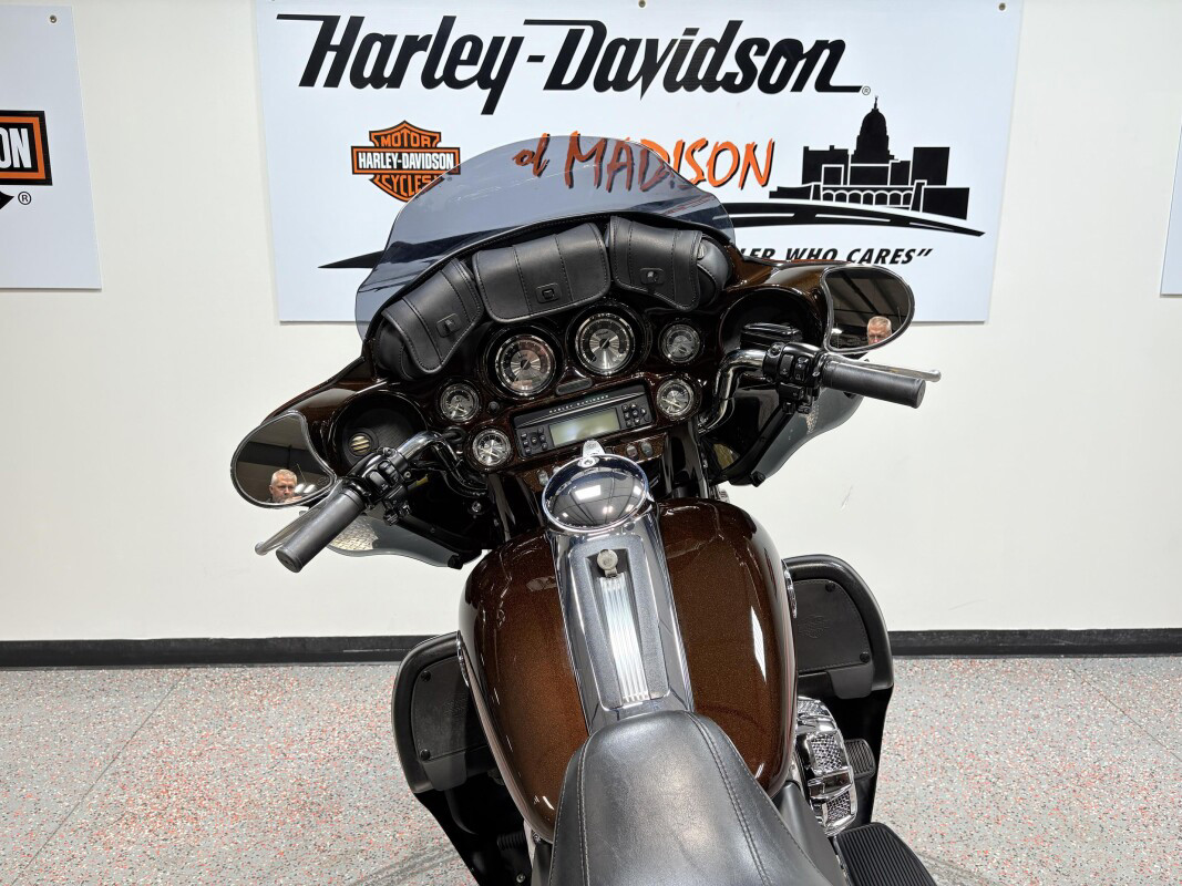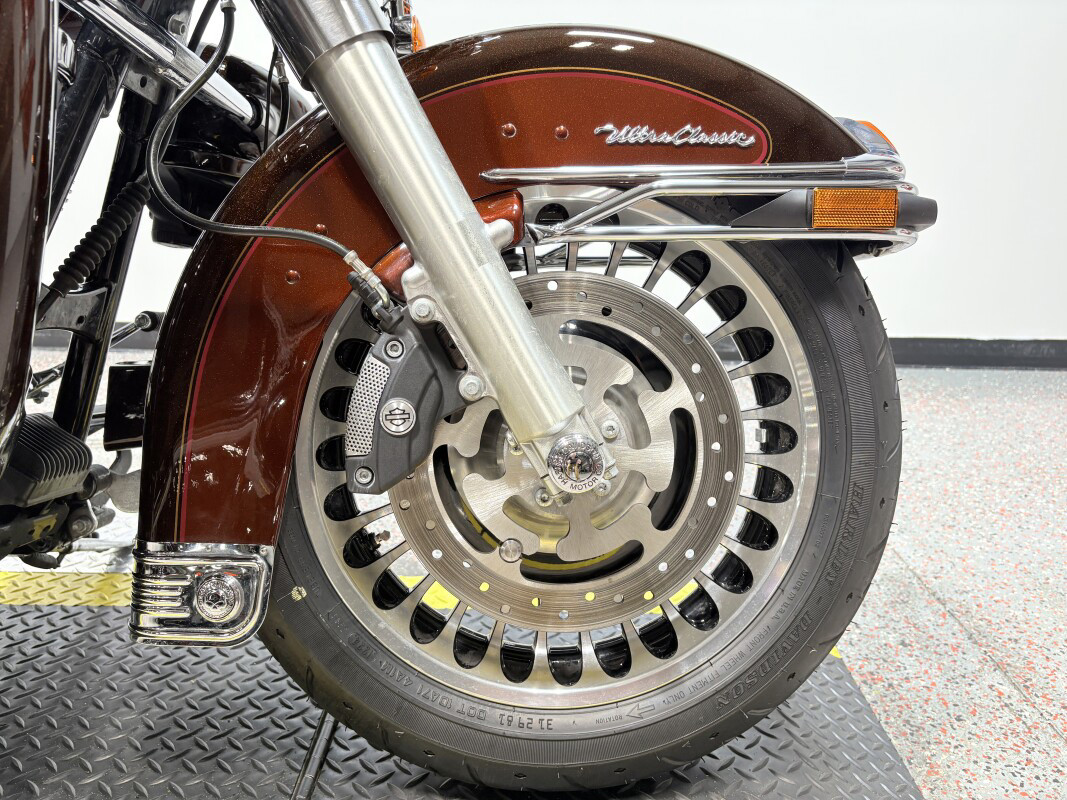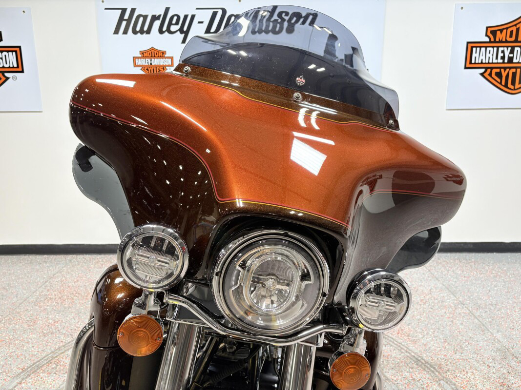 The Ultra Classic Electra Glide sets the standard for long-haul touring comfort and convenience. Though many imitators sought to duplicate it, the Ultra Classic Electra Glide stands tall as a benchmark for touring enthusiasts. A fourspeaker, 80-watt Harmon/Kardon Advanced Audio System, one-piece, two-up Electra Glide Classic comfort stitch seat with passenger backrest, adjustable fairing-mounted air deflectors, vented removable fairing lowers with integral glove boxes, spacious Tour-Pak carrier and injection-molded hard saddlebags, and standard electronic cruise control, all combine comfort and function as styling touches that make it a Harley-Davidson.