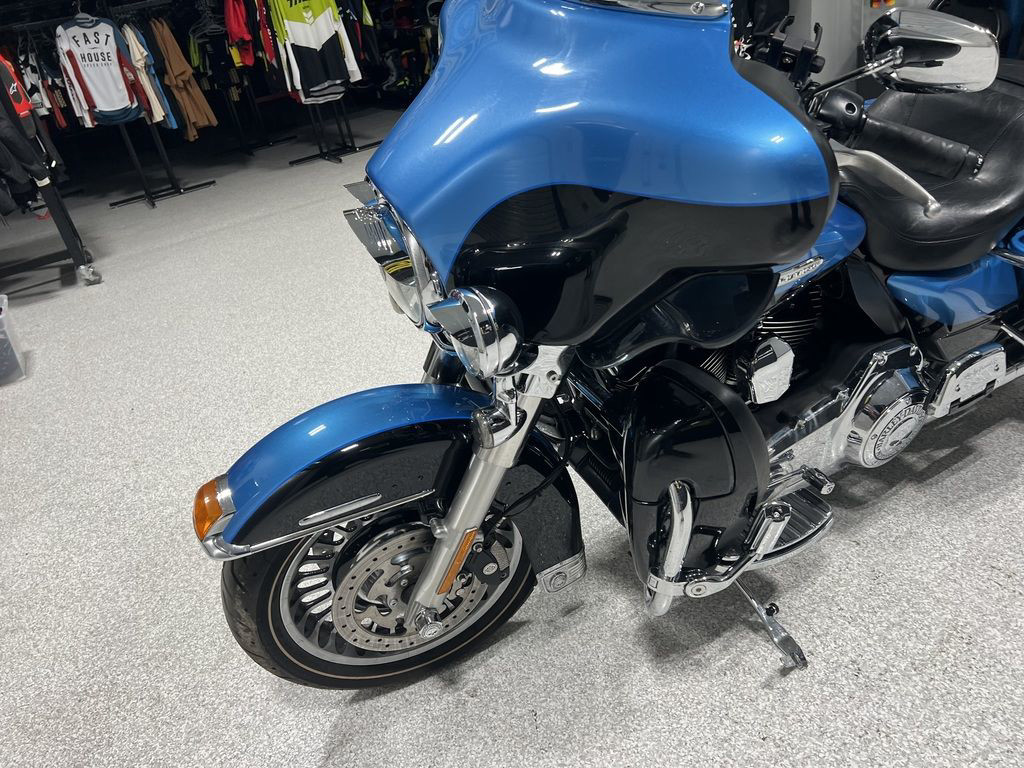 The 2011 Harley-Davidson® Electra Glide® Ultra Limited FLHTK is a premium featured touring bike full of authentic Harley-Davidson® grand American touring style. Some of the bike's premium features include: ABS brakes, heated hand grips, titanium face gauges, Tour-Pak inserts, a premium Tour-Pak luggage rack, 28-Spoke contrast chrome wheels, and special Ultra Limited identifier medallions.