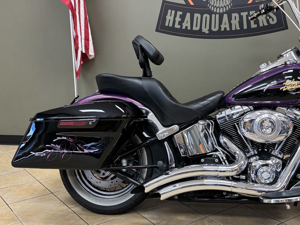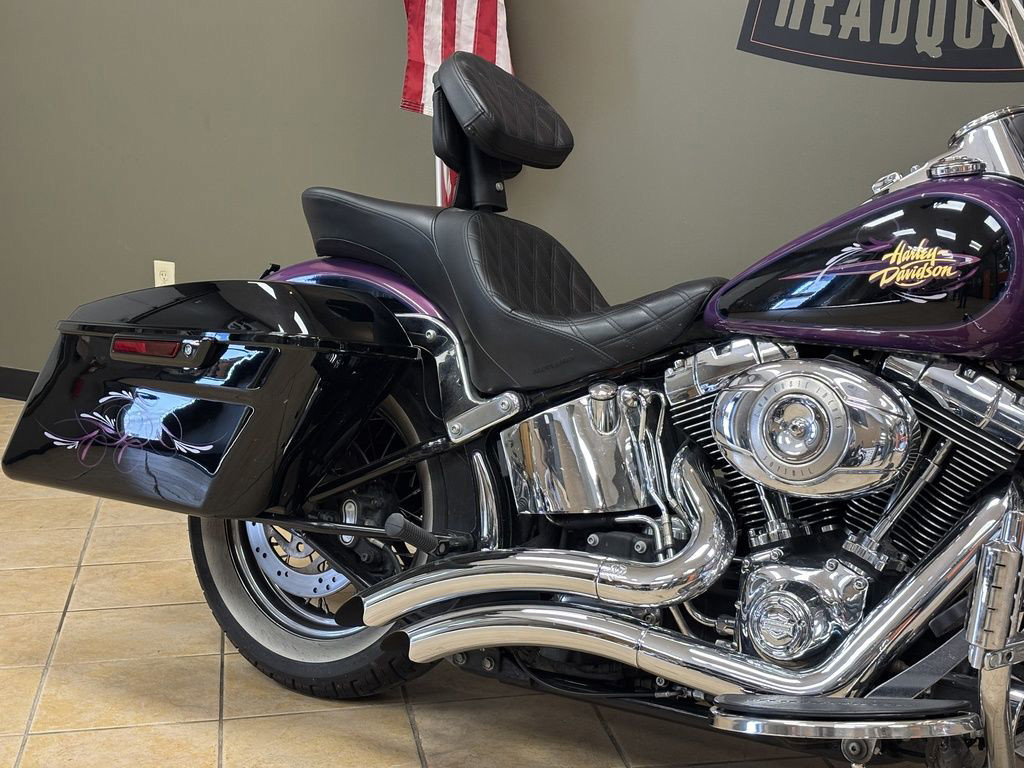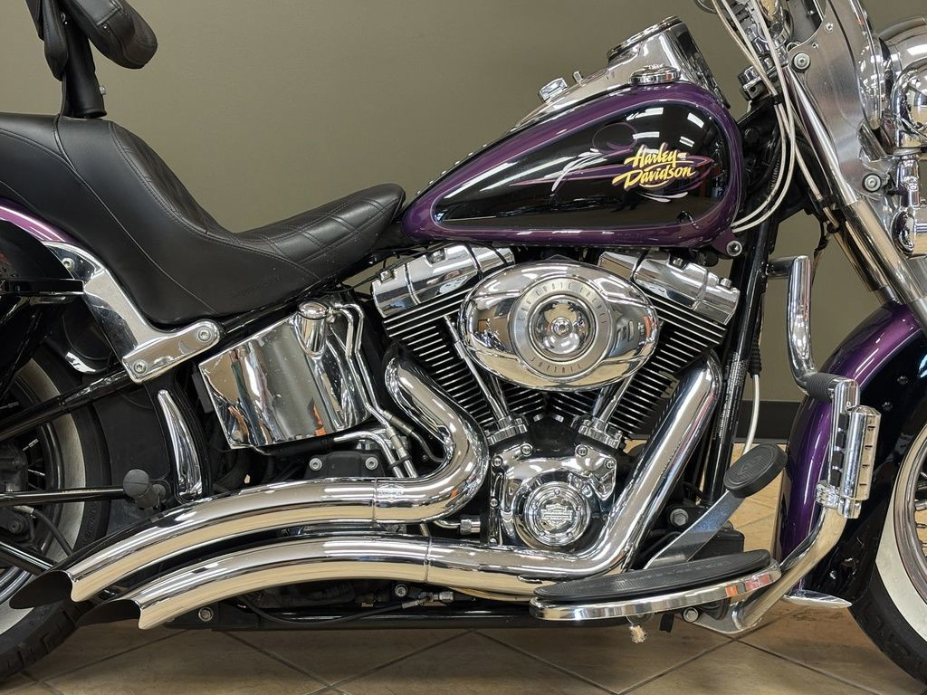 The 2011 Harley-Davidson® Heritage Softail® Classic motorcycle FLSTC is fully equipped with modern touring capabilities and even has a removable motorcycle windshield. Enjoy mile after mile with a large capacity 5 gallon Softail fuel tank. The Softail tank is also dripping with authentic Harley-Davidson® style. The Harley® FLSTC has full length rider footboards with rubber vibration isolation for added comfort. Another of the many great features of this classic motorcycle is the detachable motorcycle windshield.