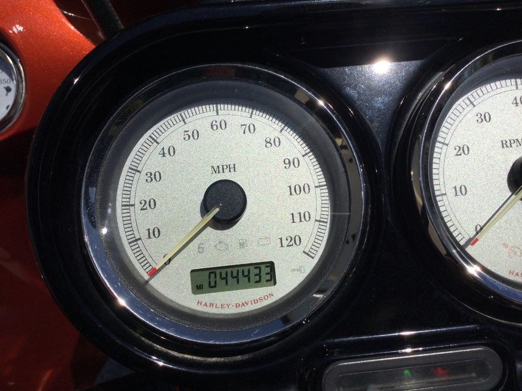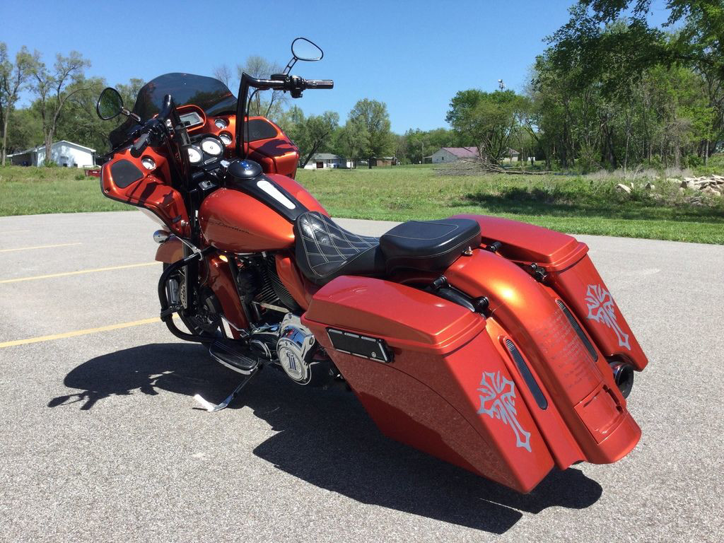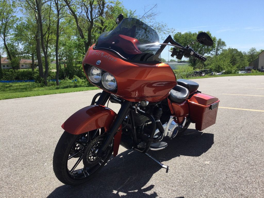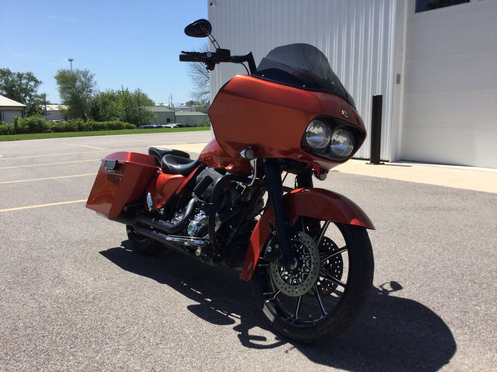The 2011 Harley-Davidson® Road Glide® Custom FLTRX is an ideal bike for touring in style with its many features, including its shark nose frame mounted Harley® fairing and large capacity Harley® gas tank. In addition this motorcycle is equipped with two Harley® saddle bags to store all of your travel needs. Giving a great custom detail to the bike is the rear motorcycle fender with tri line motorcycle fender lights.
