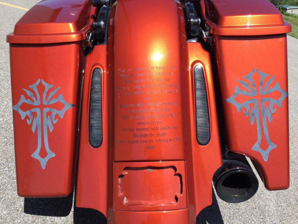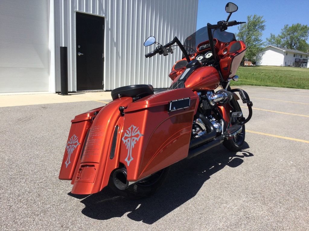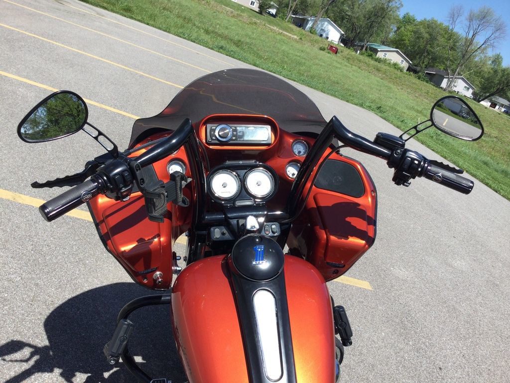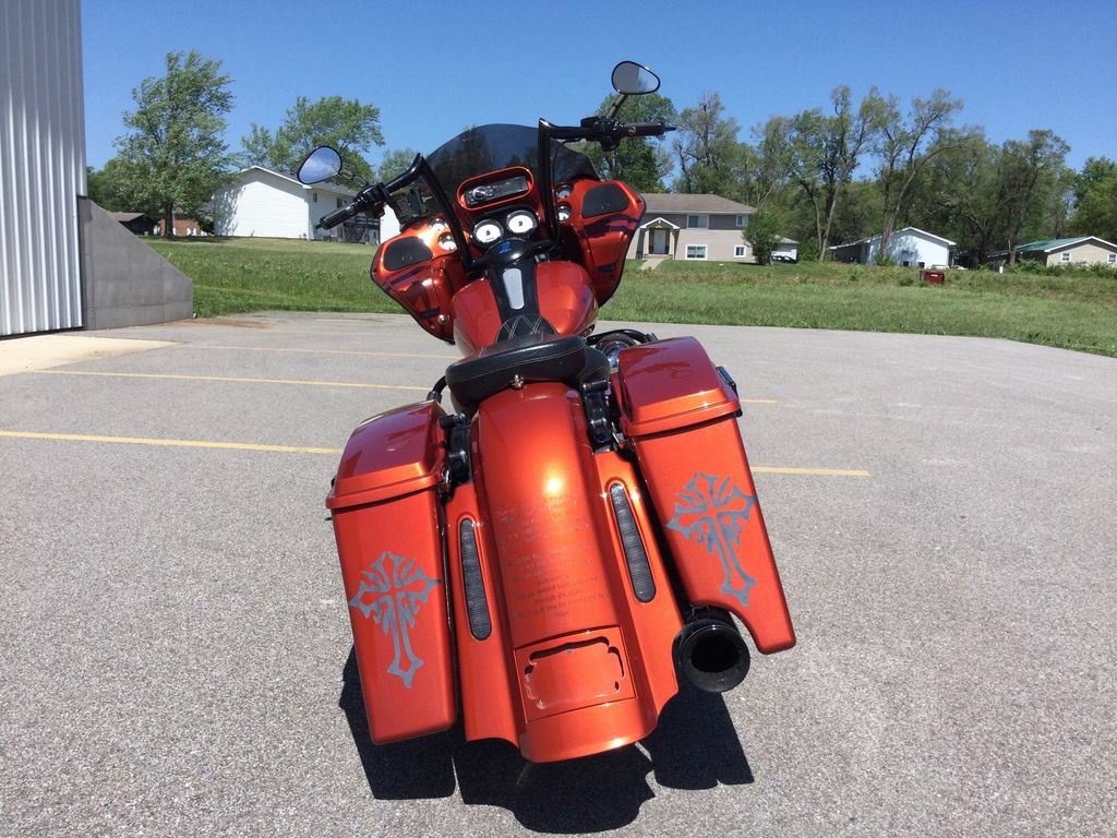 The 2011 Harley-Davidson® Road Glide® Custom FLTRX is an ideal bike for touring in style with its many features, including its shark nose frame mounted Harley® fairing and large capacity Harley® gas tank. In addition this motorcycle is equipped with two Harley® saddle bags to store all of your travel needs. Giving a great custom detail to the bike is the rear motorcycle fender with tri line motorcycle fender lights.