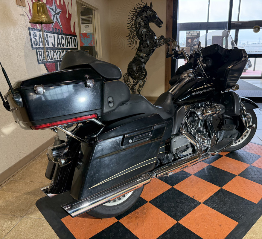 New for 2011 is the Harley-Davidson® Touring Road Glide® Ultra FLTRU, a premium-feature bike for your motorcycle travel. This bike will give you long-haul touring features and custom style including the GTX saddlebags, Tour-Pak®, large 17 in. front wheel, high output accessory connector, cruise control, and comfortable motorcycle seat. Also take note of the frame-mounted Harley fairing offering you dual storage compartments plus wind protection for your motorcycle travel. The motorcycle seat on the Road Glide Ultra FLTRU gives comfort to the driver and any passenger. Take a minute to learn more about all the features on this motorcycle.