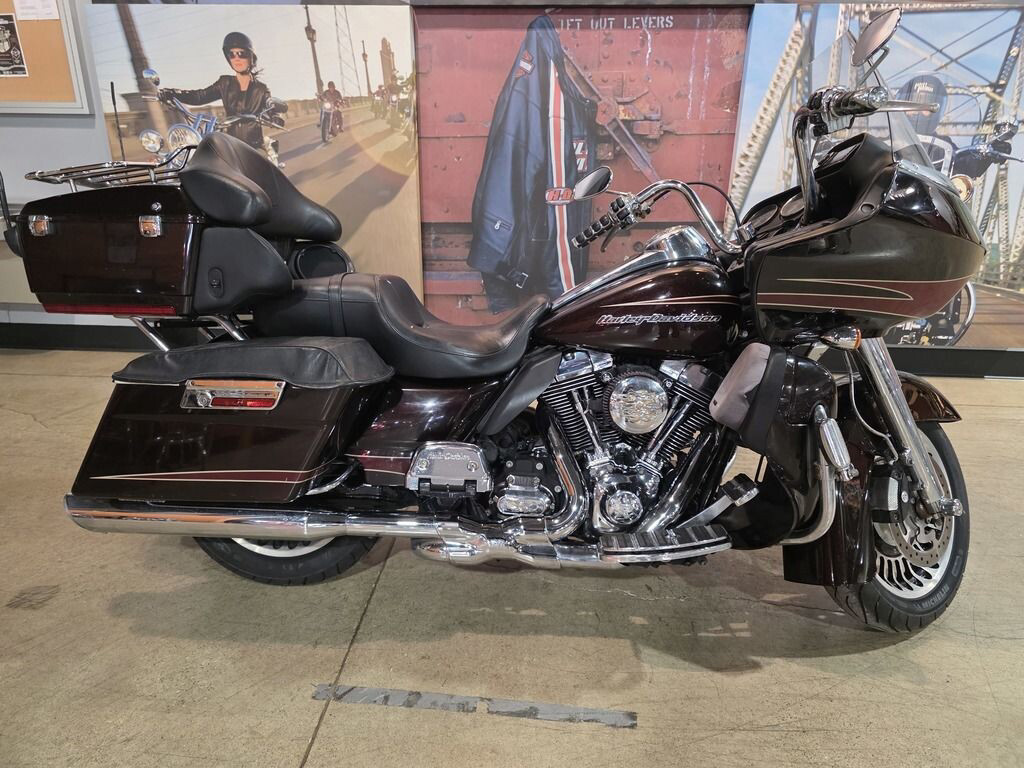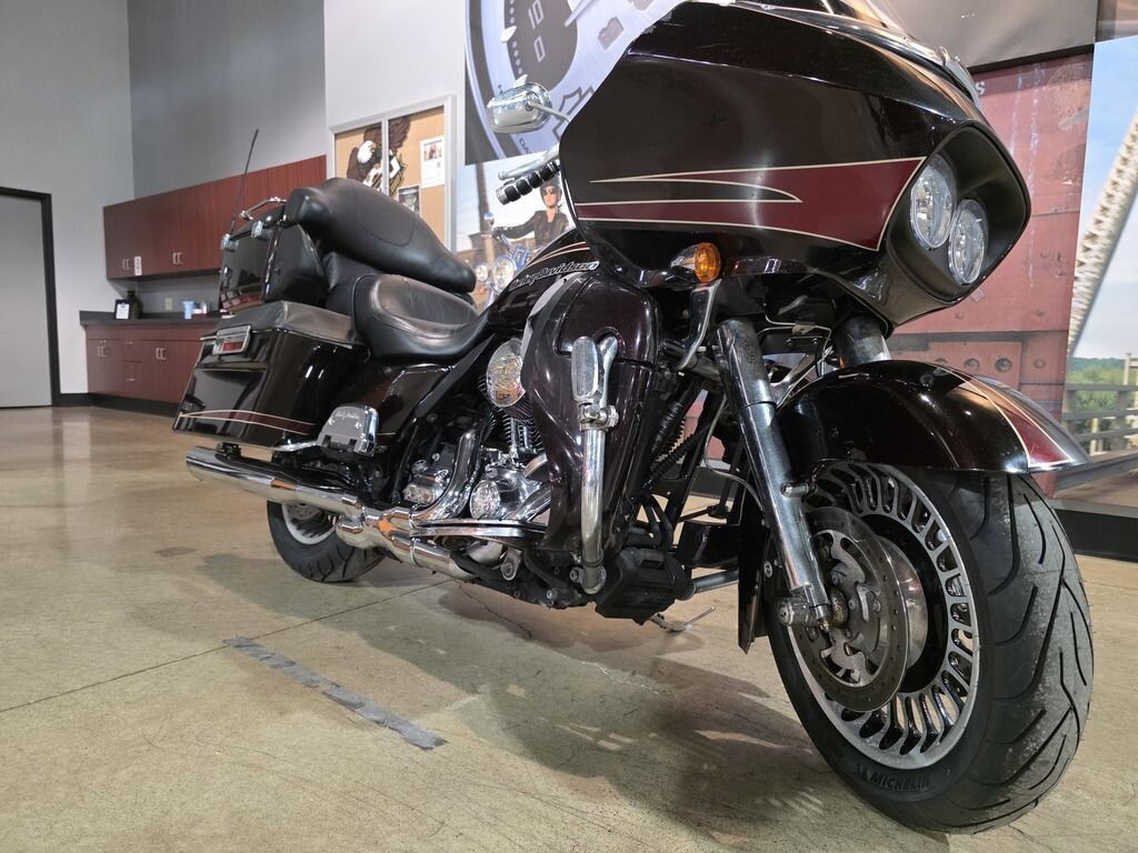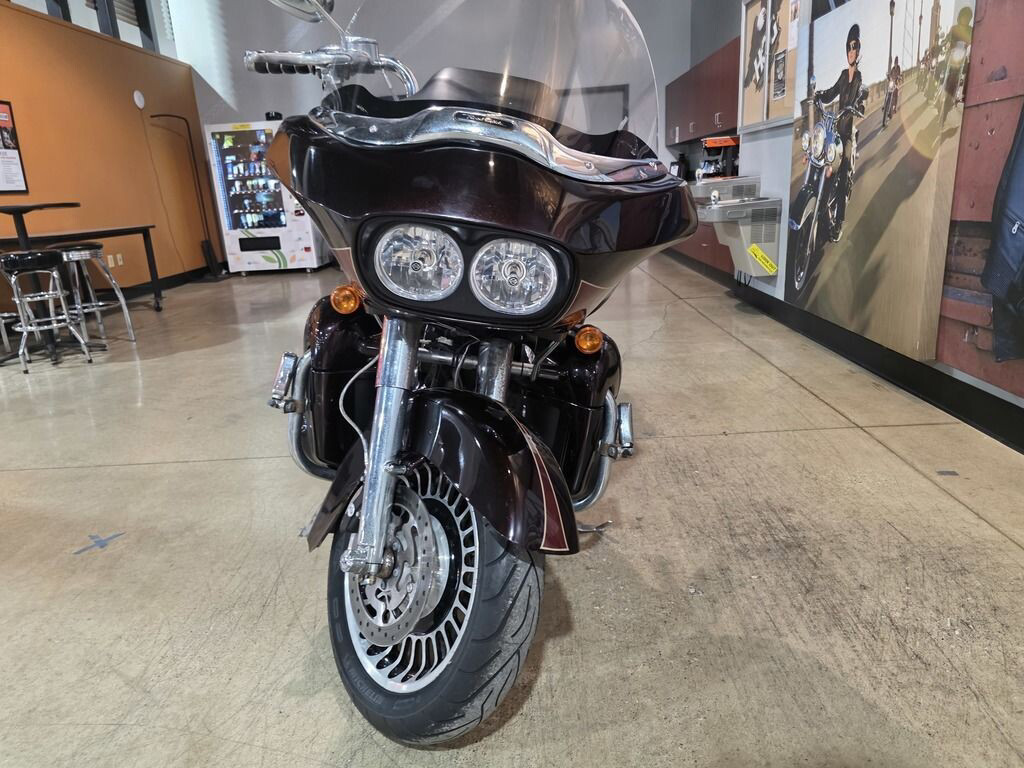 New for 2011 is the Harley-Davidson Road Glide Ultra FLTRU, a premium feature bike for your motorcycle travel. This bike will give you long-haul touring features and custom style including, the GTX saddlebags, Tour-Pak, large 17-inch front wheel, high output accessory connector, cruise control, and comfortable motorcycle seat. Also take note of the frame mounted Harley fairing offering you dual storage compartments plus wind protection for your motorcycle travel. The motorcycle seat on the Road Glide Ultra FLTRU gives comfort to the driver and any passenger.