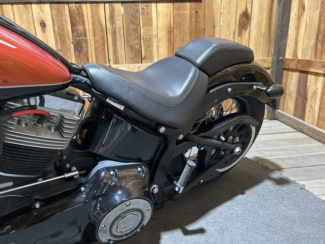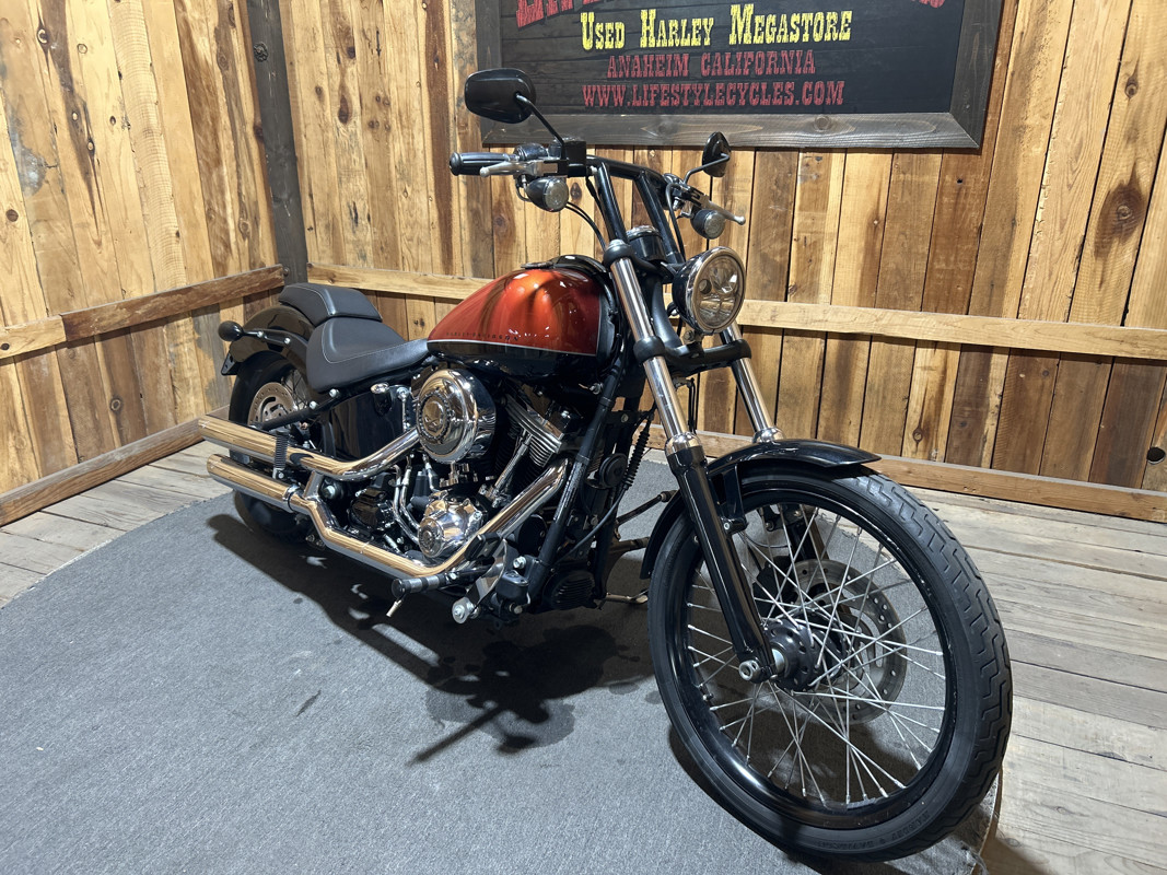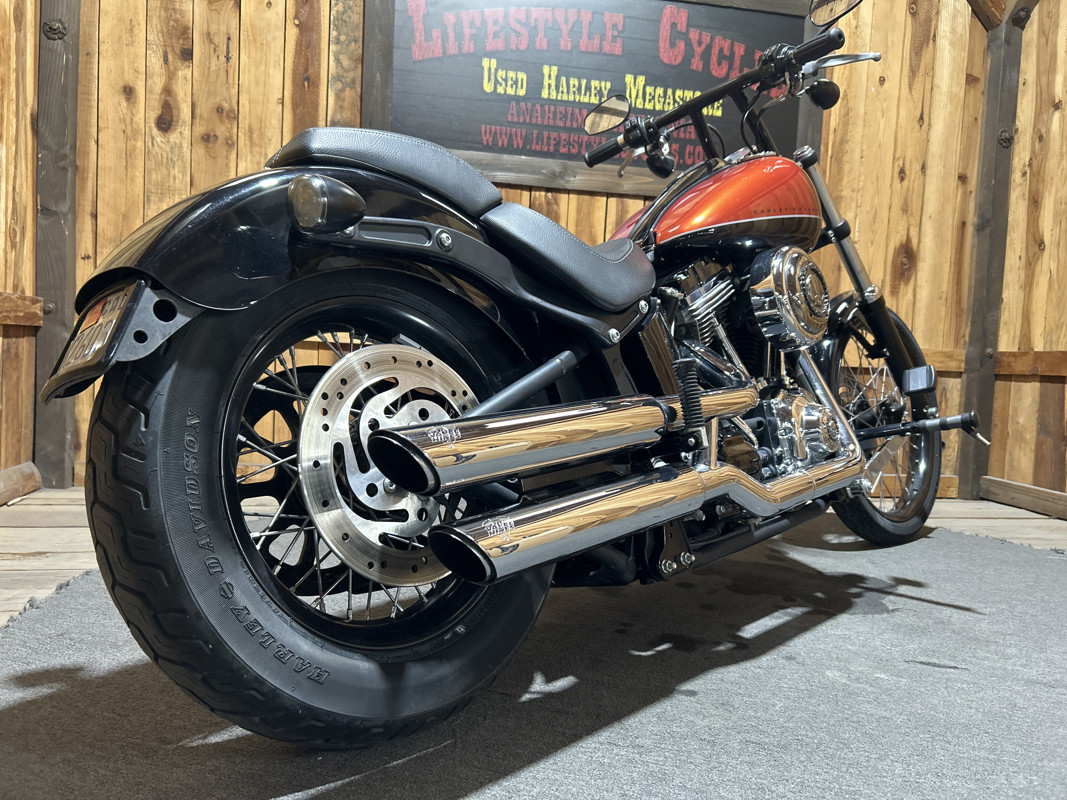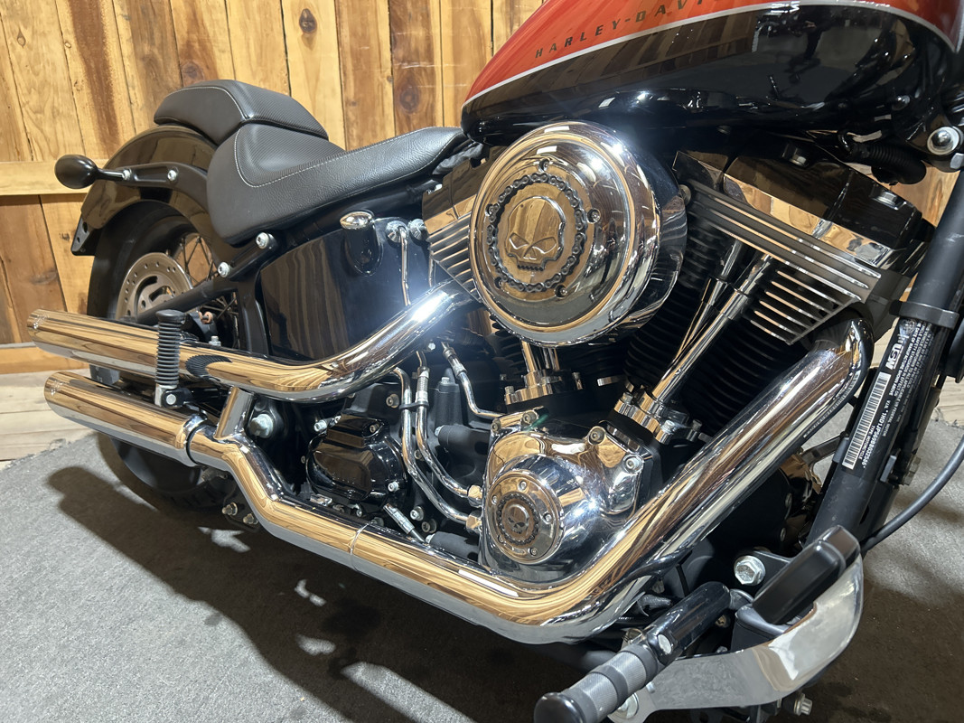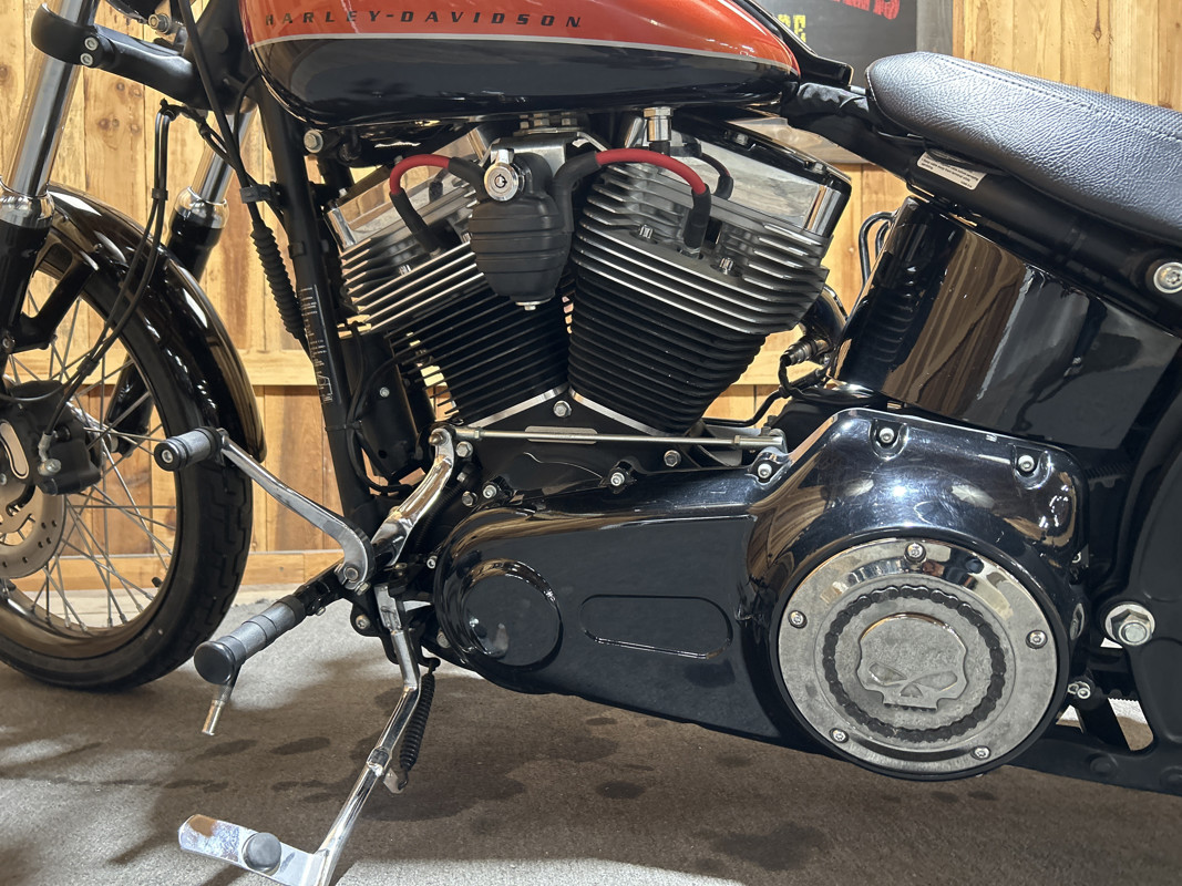 * Harley OEM Vivid Black/Sedona Orange Paintjob * 96 Cubic Inch Harley Twin Cam Motor * 6 Speed Transmission * Stock Air Cleaner with Chrome Willie G Skull Cover * Vance and Hines Dual Chrome Staggered Slash Cut Exhaust * Forward Controls * 10-Inch Black T-Bars * Solo Rider Seat with Detachable passenger Seat Pad
