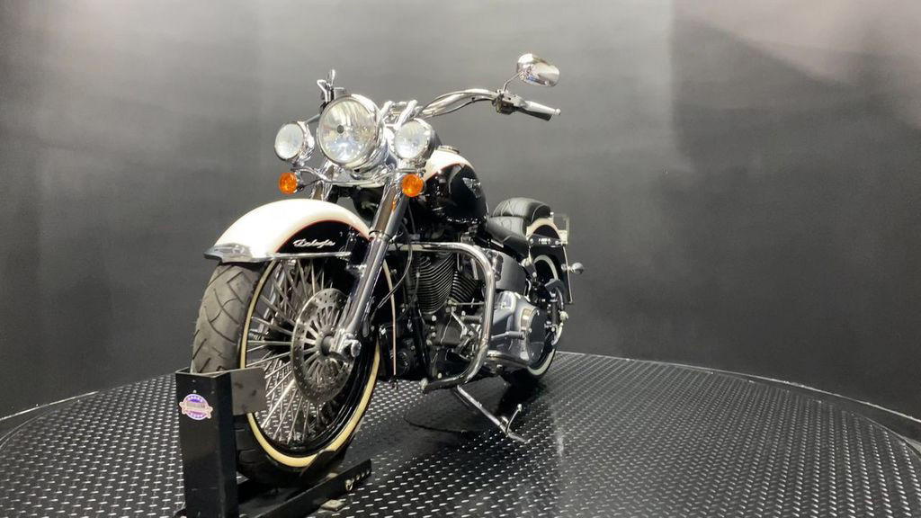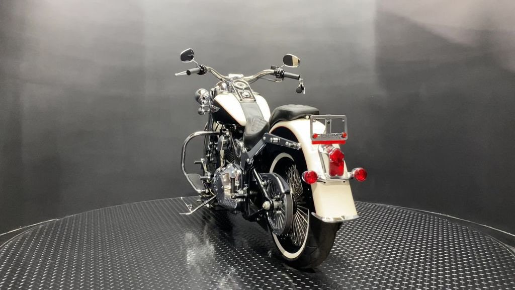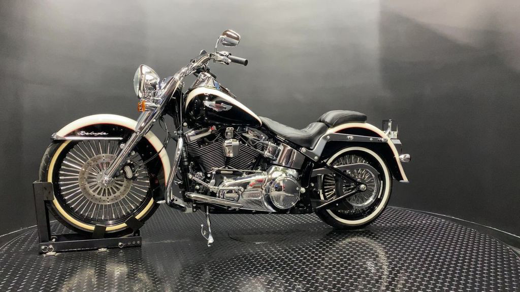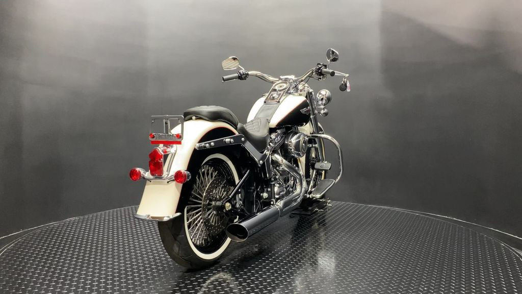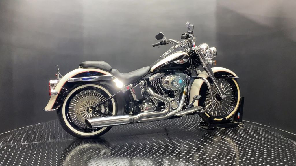 YOU ARE LOOKING AT A 2011 HARLEY DAVIDSON SOFTAIL DELUXE (FLSTN) WITH 7,613 MILES ON IT. IT IS BRICH WHITE AND VIVID BLACK IN COLOR AND POWERED BY A 1584CC (96") FUEL INJECTED ENGINE AND 6 SPEED TRANSMISSION. THE BIKE COMES WITH ABS BRAKES, 2 KEYS, 2 FOBS, AND FACTORY SECURITY SYSTEM. THERE ARE SOME EXTRAS ON THE BIKE WHICH INCLUDE D&D EXHAUST ($1,049.95), MUSTANG SEAT ($490.95), BIG SPOKE WHEELS ($1,384.95), ENGINE GUARD ($214.95), FRONT END ($549.95), AIR RIDE REAR SUSPENSION ($999.95), AND BELT SPROCKET ($260.95). THERE ARE NO SCRATCHES, DENTS, OR DINGS THAT I CAN FIND WITH THE EXCEPTION OF SMALL TOUCHUPS ON THE FRONT FENDER. THE CHROME AND ALUMINUM ARE IN GOOD CONDITION. THE TIRES HAVE GOOD TREAD LEFT ON THEM.
