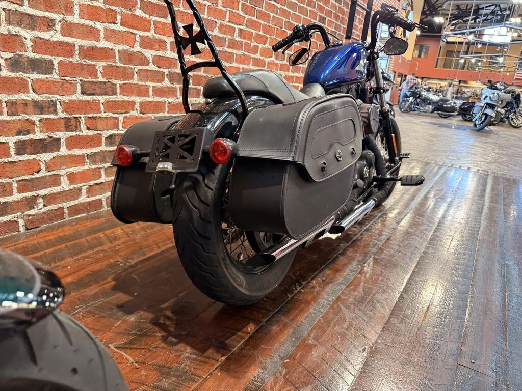 The 2011 Harley-Davidson Sportster Forty-Eight XL1200X is one of the garage custom motorcycles in the Harley Dark Custom line. This bike cruises down the road with a 1200 cc Evolution engine – an engine with a true Harley-Davidson soul. The Forty-Eight also has an authentic peanut tank which first appeared on Harley-Davidson back in 1948 (its name origin) and has been a defining Sportster feature ever since. The front end of the bike looks beefy with its fat MT90 tire. The Harley Sportster Forty-Eight look is enhanced with the lowered front and rear suspension. Add a low seat height, and you have a serious looking motorcycle with an approachable riding stance. Take sometime and look over the features of this Harley Dark Custom, including the unique under mount motorcycle mirrors.