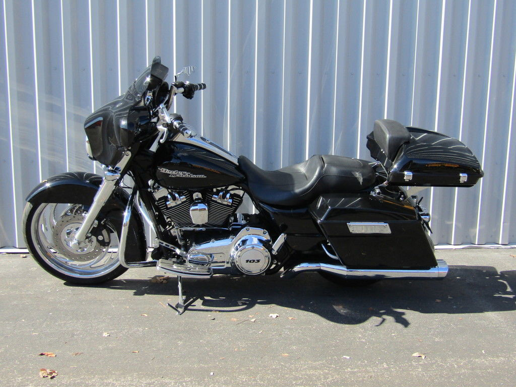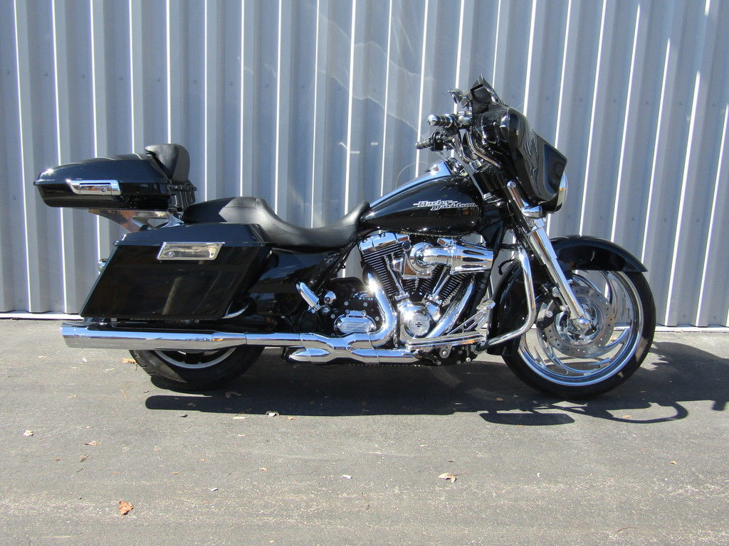 The 2011 Harley-Davidson® Street Glide® FLHX is equipped with an iconic bat wing fairing giving this custom hot rod bagger an amazing Harley® style that needs to be seen and ridden. New for 2011, the Street Glide® FLHX has a 2 -1-2 exhaust. Also new for the Street Glide® is a Power Pak factory option that includes the Twin Cam™ 103 engine, security, and ABS, giving you the option of an enhanced motorcycle touring bike.