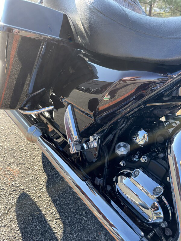 The Street Glide is a bagger with street-wise soul, such as stripped down trim and chrome, low suspension, and blackened, cropped wind deflector. Inspired by the street, the Street Glide is ready to roar with attitude. The innovative Harley-Davidson Touring chassis is based on a single-spar, rigid backbone frame and a stout swingarm developed to withstand the demands of long-haul touring riders and today's powerful engines.