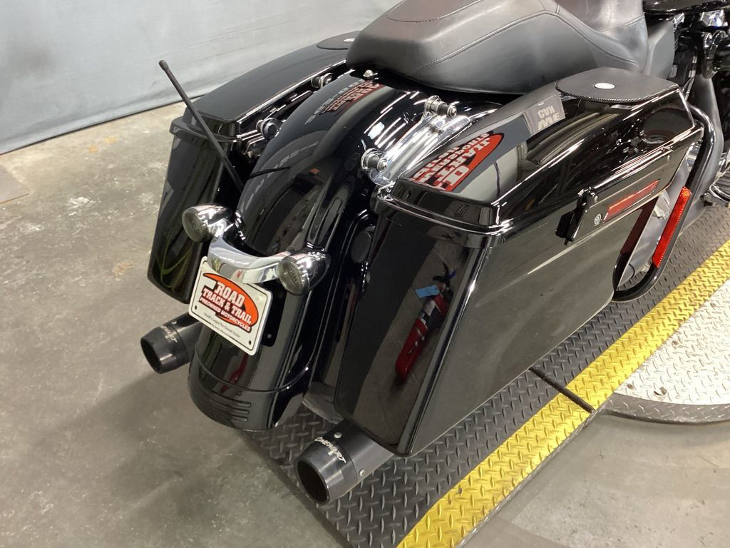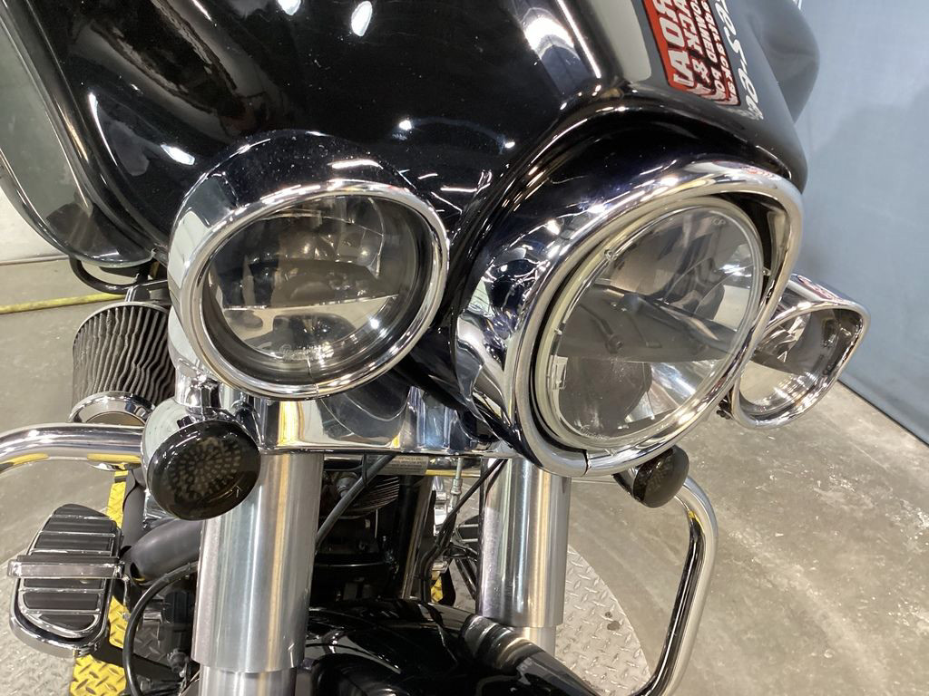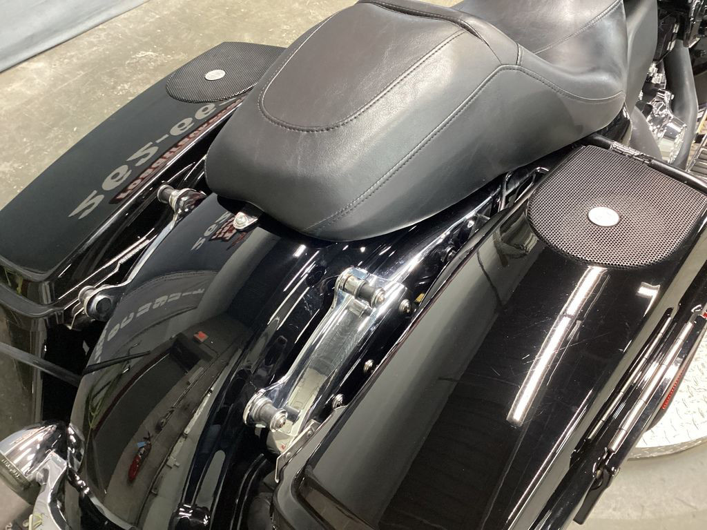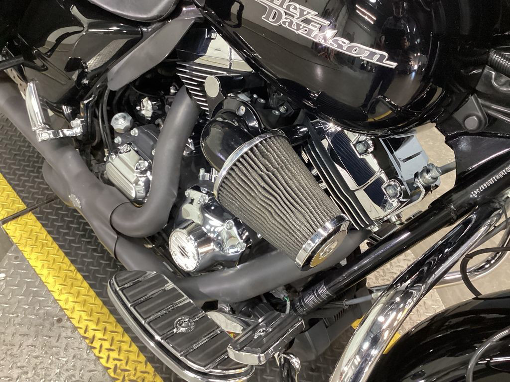 ONLY 54,933 MILES, 103" MOTOR, VANCE AND HINES X-PIPE TRUE DUAL HEADER WITH RINEHART SLIP ONS, SCREAMIN EAGLE HIGH FLOW INTAKE, HD BAG LID SPEAKERS, PROGRESSIVE REAR SHOCKS, UPGRADED CHROME RIDER FLOORBOARD INSERTS AND FOOT CONTROLS, UPGRADED HEADLIGHT AND SPOT LIGHTS, UPGRADED BEZELS, LED SIGNALS, CRASHBAR, CHROME WINDSHIELD TRIM, AUDIO, ABS, SECURITY, CRUISE CONTROL, 6 SPEED TRANS, AND NEW TIRES! NICE AND LOADED BLACK BAGGER! THE TOP LEFT SIDE OF THE GAS TANK HAS A DING AND SCRATCH THAT HAS BEEN TOUCHED UP.