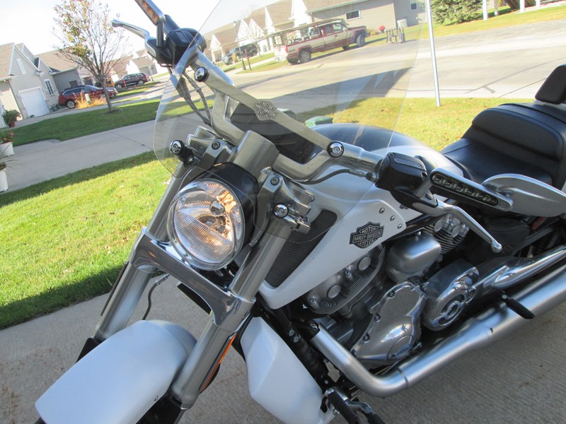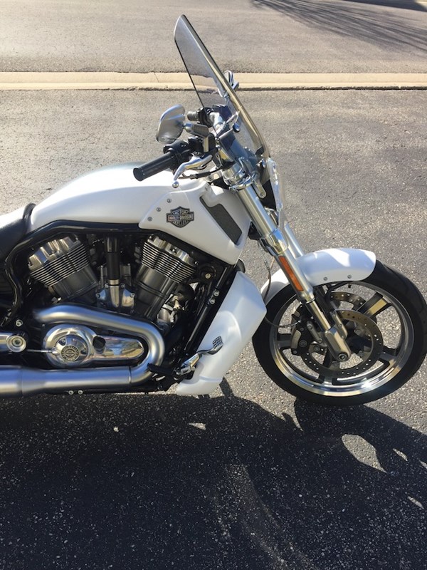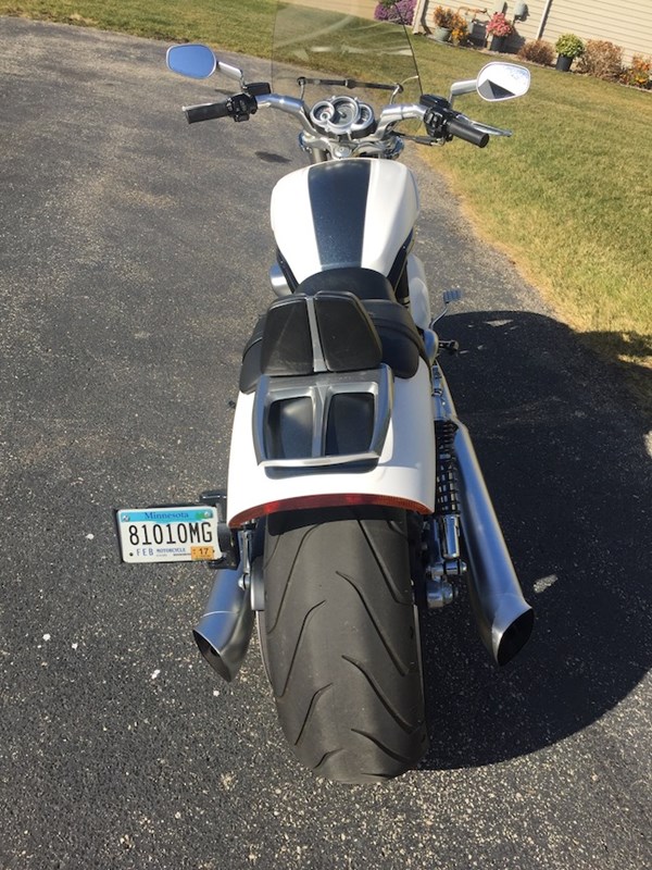 Head-turning 2011 White Hot Denim VRod Muscle, "Thor", needs a nice new owner and home. Was my mount for HOG and pleasure riding around southeastern Minnesota. Stored in a heated garage at HD dealer during winters and serviced on the way in and out since purchase. New 240mm rear tire and battery at the start of 2016 season. HD just performed full 10K maintenance and replaced front tire for this riding season. Out of storage and ready to rumble! Accessories include quick attach sport windshield & storage bag, left-side storage pouch, backrest, and rack. A must sell situation--my misfortune is your opportunity! Payment terms: Cash or Cashiers Check.