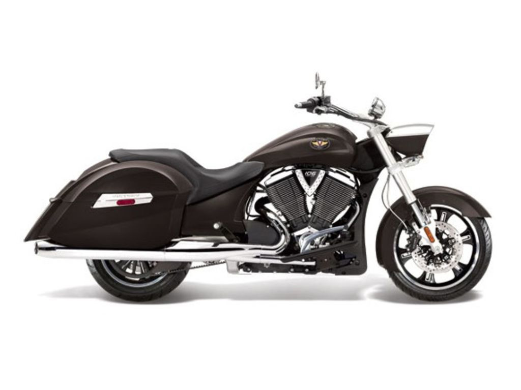 ONLY 22,409 MILES, 1-OWNER, FACTORY HARD BAGS, VICTORY WINDSHIELD, VICTORY CRASHBARS, BAG GUARDS, HIGHWAY PEGS, LED SIGNALS AND TAILLIGHT, CRUISE CONTROL, 106" MOTOR, AND 6 SPEED TRANS! CLEAN FACTORY LOADED LOWER MILEAGE TOURING RIDE!