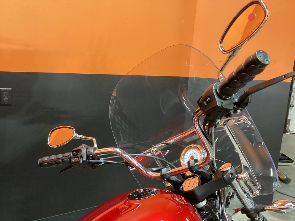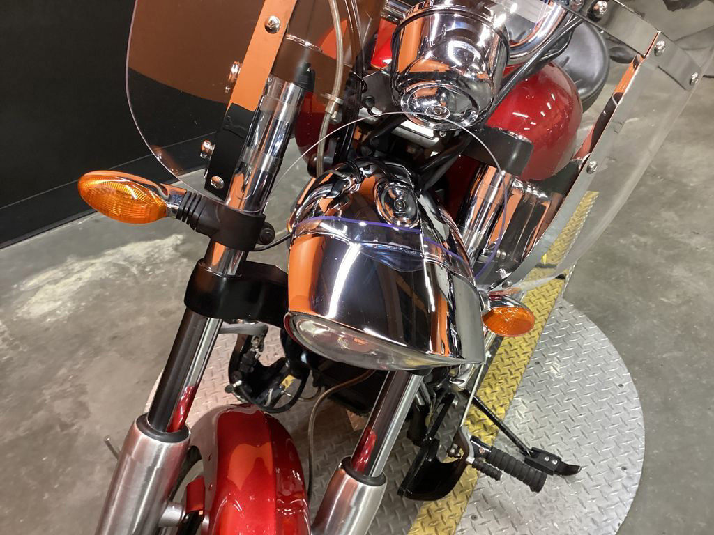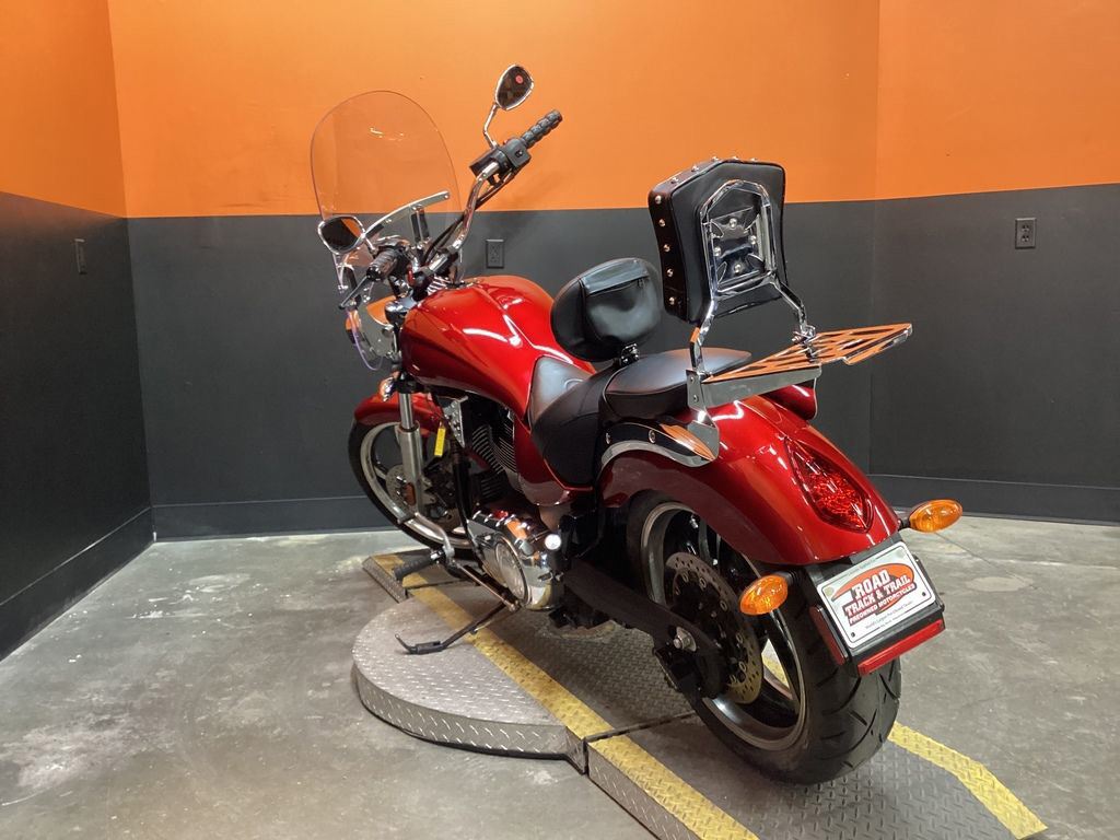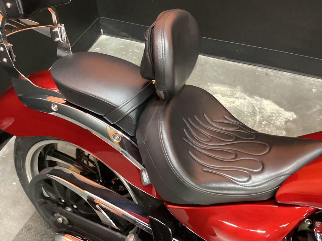 ONLY 24,591 MILES, AFTERMARKET EXHAUST, CORBIN FLAMED RIDERS SEAT, RIDERS BACKREST, PASSENGER BACKREST, REAR RACK, WINDSHIELD, UPGRADED GRIPS AND LEVERS, 106" MOTOR, 6 SPEED TRANS, AND NEW REAR TIRE! SUPER CLEAN AND LOADED MUSCLE CRUISER!