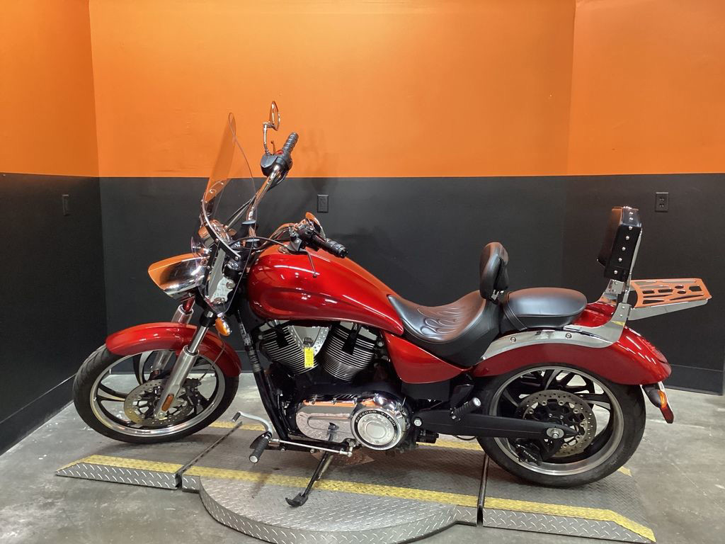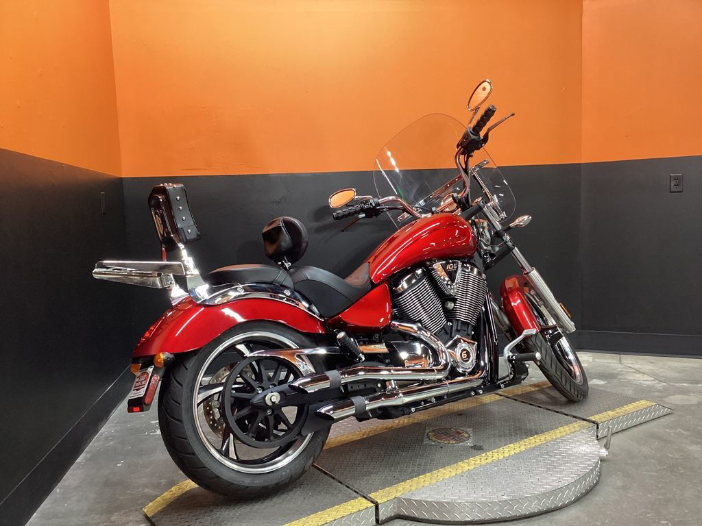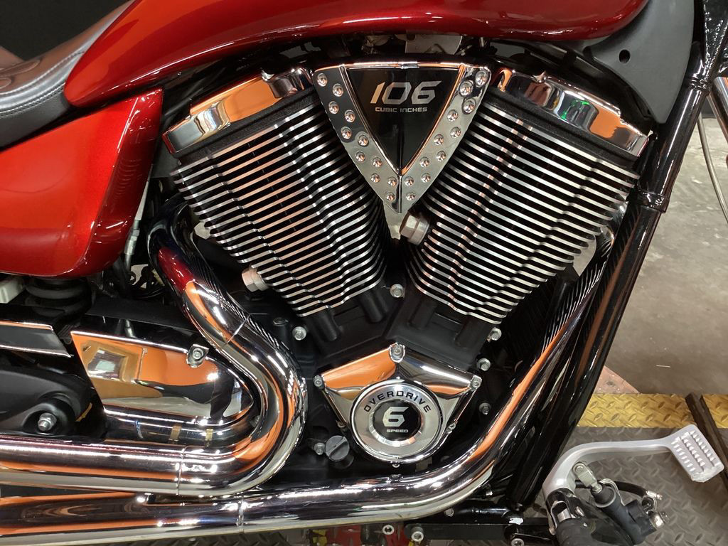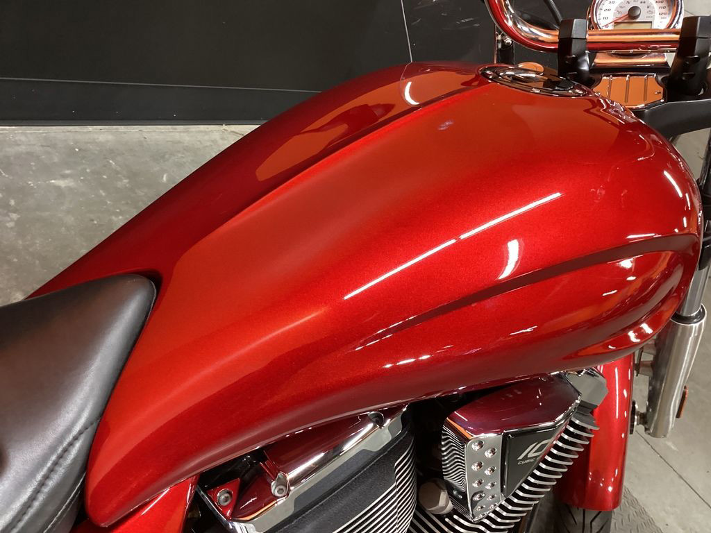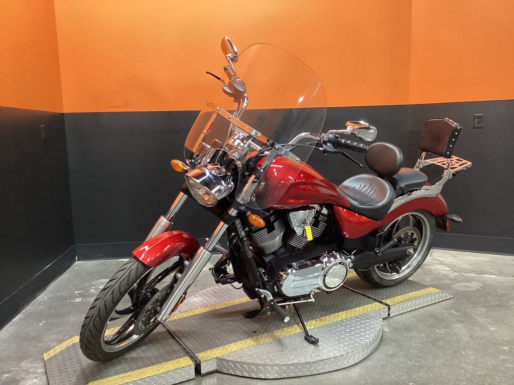 ONLY 24,591 MILES, AFTERMARKET EXHAUST, CORBIN FLAMED RIDERS SEAT, RIDERS BACKREST, PASSENGER BACKREST, REAR RACK, WINDSHIELD, UPGRADED GRIPS AND LEVERS, 106" MOTOR, 6 SPEED TRANS, AND NEW REAR TIRE! SUPER CLEAN AND LOADED MUSCLE CRUISER!