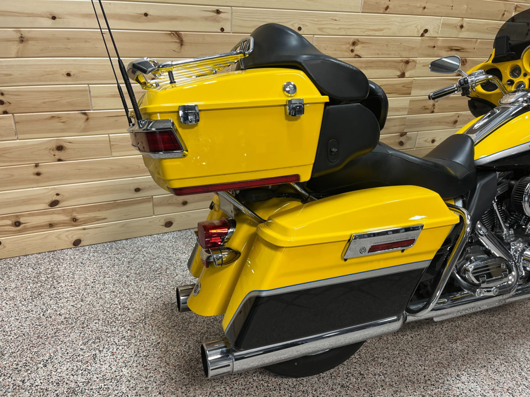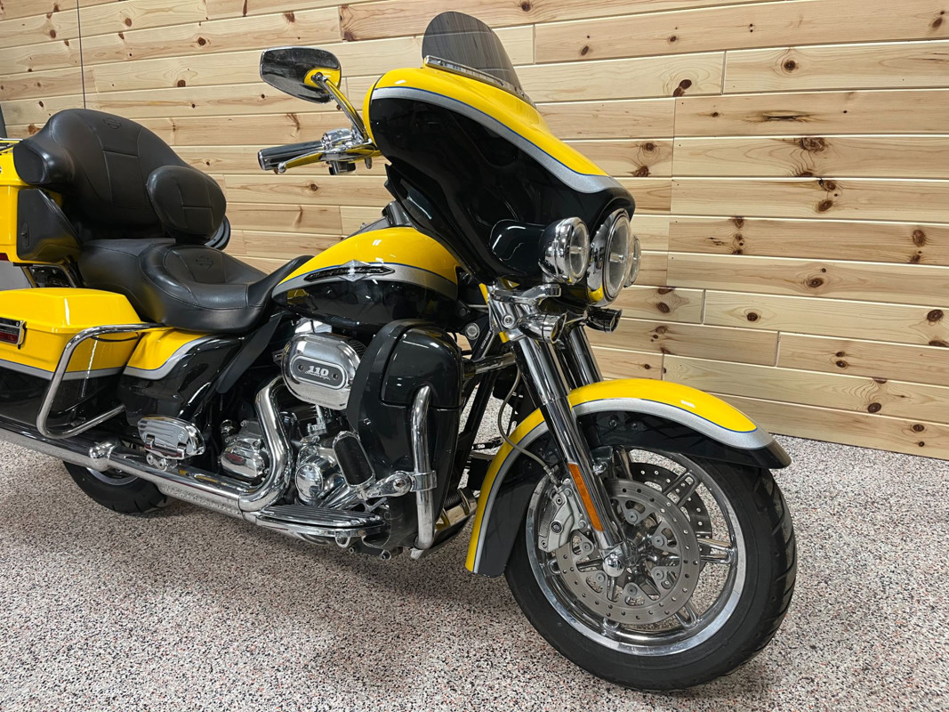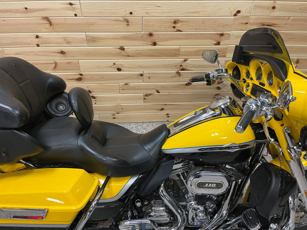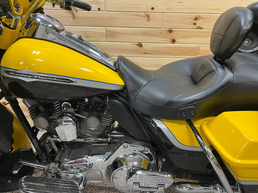 The 2012 Harley-Davidson® CVO™ Ultra Classic® Electra Glide® is a high-end performance motorcycle with Screamin' Eagle® power that gives you the ultimate in premium featured touring. This bike is powered by a Harley Screamin' Eagle Twin Cam 110™ engine. This Twin Cam engine provides 110 ci of power, a low cruising rpm, and lots of low end torque. Setting this bike's CVO Screamin' Eagle engine apart from the rest is the granite powertrain. This Screamin' Eagle performance motorcycle is custom touring at its finest. For an ultra comfortable ride the seat is heated. Take a good look at all of the premium features and components of this bike including the Harley-Davidson Screamin' Eagle Twin Cam 110 engine and upgraded BOOM! Includes high performance audio speakers. There are a few other Harley CVO motorcycles to learn more about as well. Take a look at the CVO™ Road Glide® Custom motorcycle, the CVO™ Softail® Convertible custom Harley, and check out the custom Harley wheels of the CVO™ Street Glide®.