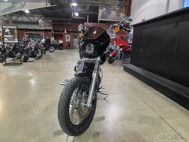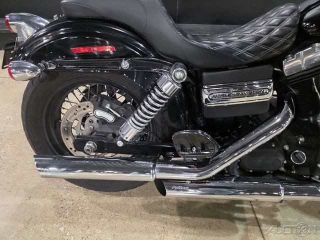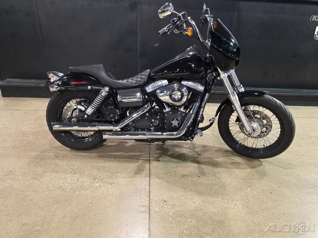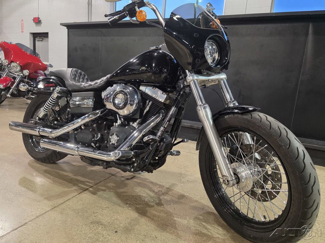 2012 Harley-Davidson® Dyna® Street Bob®The 2012 Harley-Davidson® Dyna® Street Bob® FXDB is a classic bobber motorcycle. If you're looking for bobber motorcycles you'll like the Street Bob®'s slammed solo bobber seat. This seat not only adds to the style of the bike, but also keeps you comfortable. The bobber appearance is also maintained in the post war style stainless steel mini ape hanger handlebar. Add that to the stripped down Dyna® fender, in combination with a good portion of the metal stripped off the bike, and you have a classic bobber motorcycle look. The 1940s sausage taillight also adds to the classic bobber motorcycle style. The classic look continues with the Harley® Street Bob® FXDB's black laced steel 19 inch Harley® wheels. And the blacked out rims, match the blacked out style of the Twin Cam 96 engine.Features may include:MINI "APE-HANGER" HANDLEBARGrab hold of the stainless steel mini ape-hanger handlebar and put your fists way up in the wind—it'll take you back to the good old days of post-war bobbers. And for that clean and minimalist, bobber look, the wires are routed inside the steel.BOBBER SOLO SEATTrue to the old school bobber look, a slammed solo seat drops you in nice and snug to the bike and close to the pavement beneath you. It's the ultimate bond with the road and your machine. Get the quintessential bobber style without sacrificing the comfort of the ride.CHOPPED REAR FENDERLose the support covers and a good chunk of metal and you get another important feature of the bobber from yesteryear: the chopped rear fender. Stripped down clean, this fender offers just enough surface for low-profile taillights and a license plate bracket. Give other riders more tire to look at when you blow past them.BLACKED OUT RIMSRaw, gritty and no-nonsense—the Street Bob® motorcycle features black laced steel wheels and stainless steel spokes with an aggressive 19" wheel up front to lead your way out of the mundane. Blacked out like the Harley-Davidson® Twin Cam engine, these wheels make a bold statement and provide a smooth, true ride.STOP-TURN-TAIL LIGHTSOld school looks meet new-school engineering. Chrome, retro-style bullet taillights combine functionality to work twice as hard—stop beams and running lights plus turn indicators in two low-profile rear lamps.