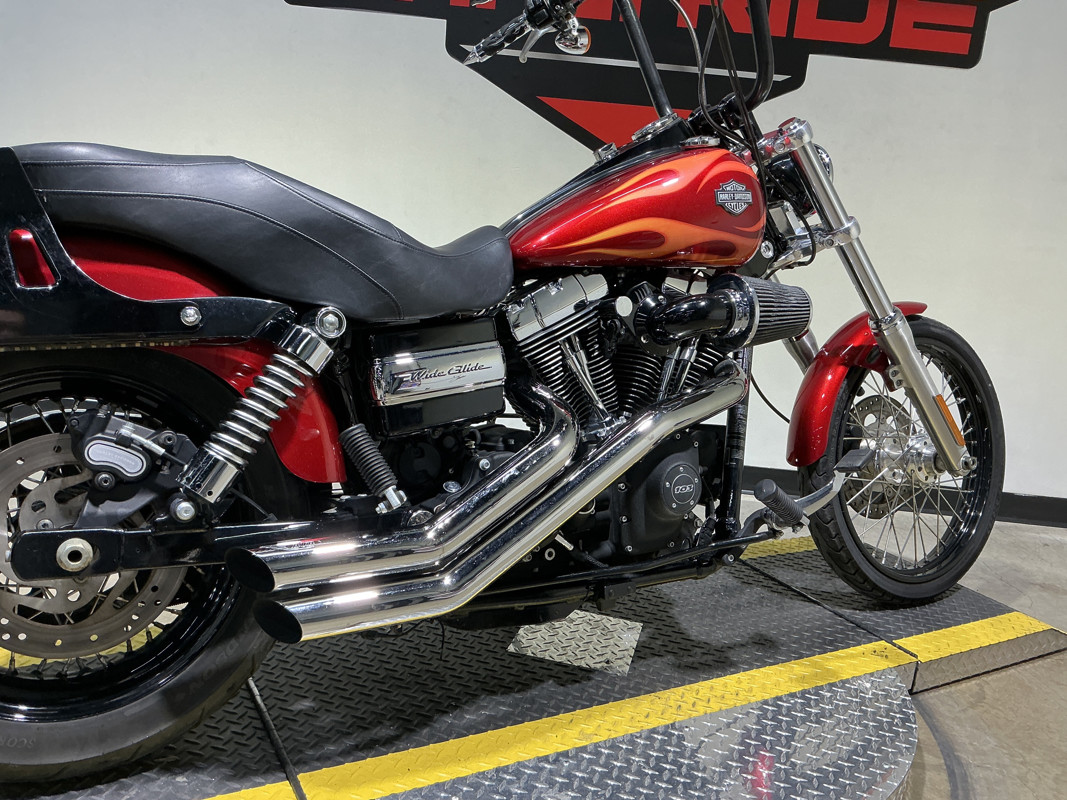 The 2012 Harley-Davidson® Dyna® Wide Glide® FXDWG is full of classic chopper motorcycle style. New for 2012, the Harley Dyna Wide Glide features a new larger air-cooled Twin Cam 103™ Harley engine with 6-speed cruise drive transmission, providing more power for passing, hill-climbing, and riding with passenger and cargo. In front is a long and raked out fork with a 21 in. wheel, giving this model quintessential chopper motorcycle style. And in the back, the Harley Wide Glide features a side-mounted license plate for added custom chopper motorcycle style. Want even more factory custom style on your chopper motorcycles? This bike also features an optional classic flame design on the fuel tank. Select the flames on the Harley-Davidson Wide Glide chopper motorcycle for a factory custom look at an affordable Harley price. Learn more about the Harley Wide Glide or other Harley cruiser motorcycles like the Super Glide® Custom Harley-Davidson® and the Fat Bob® that has a big motorcycle feel. For a classic bobber motorcycle take a look at the Street Bob®. Check out all of the Dyna motorcycles and find a bike right for you.