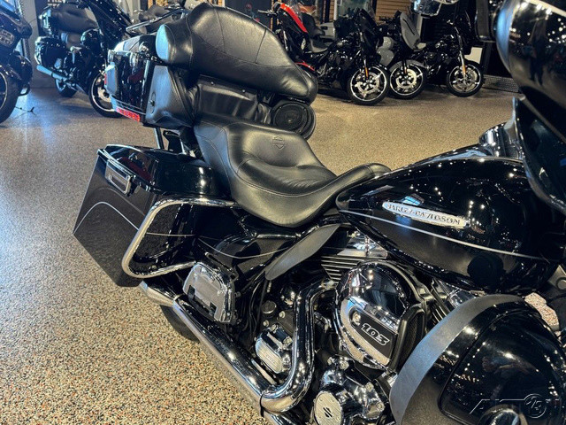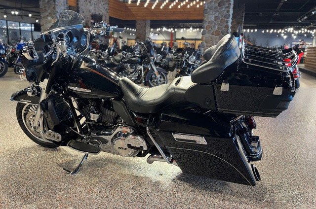 2012 Harley-Davidson® Electra Glide® Ultra LimitedThe 2012 Harley-Davidson® Electra Glide® Ultra Limited FLHTK is a premium featured touring bike full of authentic Harley-Davidson® grand American touring style. Some of the bike's premium features include: air-cooled Twin Cam 103 engine for powerful performance, ABS brakes, heated hand grips, titanium face gauges, Tour-Pak inserts, a premium Tour-Pak luggage rack, 28-Spoke contrast chrome wheels, and special Ultra Limited identifier medallions. Also found on the Harley® Electra Glide® Ultra touring bike is a 6 gallon fuel tank so you have to stop less for fuel. Harley® has many other motorcycle touring bikes, all to provide you with comfort and style.Features may include:CLASSIC FUEL TANKPart of the unmistakable style of the Harley-Davidson® Electra Glide® Ultra Limited motorcycle is plenty of room for showing off your paint. This classically styled, bold six-gallon fuel tank doesn't just give you a bigger canvas for premium or custom paint; it holds six gallons of go so you can eat up a lot more road between pit stops. We know fuel economy is important—but so is style. A dual-color paint scheme, crisp pinstripes that run the length of the bike and special Harley-Davidson® tank medallions give this ride a one-of-a-kind look.BAT-WING FAIRINGDesigned by Chief Styling Officer Willie G. Davidson, the nimble, fork-mounted Bat-Wing fairing first appeared on the touring scene back in 1969. And it continues to evolve and symbolize the essence of Grand American Touring motorcycles more than forty years later. The full 8-inch windscreen gives it that classic touring profile and additional comfort. Simply put, the wind is not a factor for the mile-hungry rider who wants to soak up the freedom of the open road for days on end.GTX® SADDLEBAGS AND TOUR-PAK®These injection-molded hard bags have room for 2.26 cu. ft. volume of long-haul luxuries and a perfect surface for showing off some premium paint. Even better, these saddlebags open from the top, so your gear won't end up spilled all over the highway. They keep your fancy unmentionables dry, and the chrome latches won't corrode in bad weather. And when you're off the road, one common key starts the bike and gives you access to your saddlebags, keeping your pockets as uncluttered as your bike's classic design. The premium Tour-Pak® luggage carrier is an extra perk, adding to the luxury look and giving you even more space to pack stuff for the road. And we add another layer to the mix with exclusive Harley-Davidson® saddlebag and Tour-Pak® liners. Dual-direction zippers for more access. Side pockets for your quick-reach items like cell phones, keys and toll money. Rubber bottoms that keep the insides dry and clean, and d-rings let you clip on attachments and shoulder straps for easy transport. This is "limited edition" without limits.LARGE 17-INCH FRONT WHEELIf you crave long-haul agility on rides of all distances, you're going to love this. We beefed things up by adding a big, mighty wheel with a low aspect ratio. That means the bike maintains its legendary tight turning radius, balanced feel and superior low-speed maneuverability.