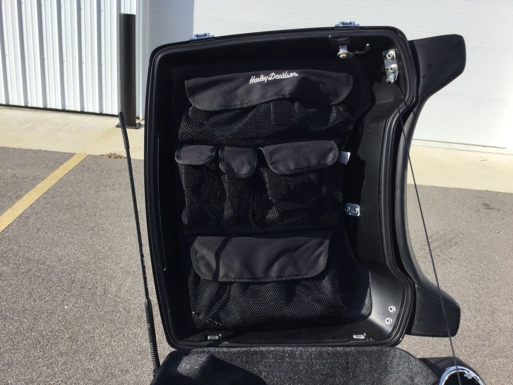 These injection-molded hard bags have room for 2.26 cu. ft. volume of long-haul luxuries and a perfect surface for showing off some premium paint. Even better, these saddlebags open from the top, so your gear won't end up spilled all over the highway. They keep your fancy unmentionables dry, and the chrome latches won't corrode in bad weather. And when you're off the road, one common key starts the bike and gives you access to your saddlebags, keeping your pockets as uncluttered as your bike's classic design. The premium Tour-Pak® luggage carrier is an extra perk, adding to the luxury look and giving you even more space to pack stuff for the road. And we add another layer to the mix with exclusive Harley-Davidson® saddlebag and Tour-Pak® liners. Dual-direction zippers for more access. Side pockets for your quick-reach items like cell phones, keys and toll money. Rubber bottoms that keep the insides dry and clean, and d-rings let you clip on attachments and shoulder straps for easy transport. This is "limited edition" without limits.