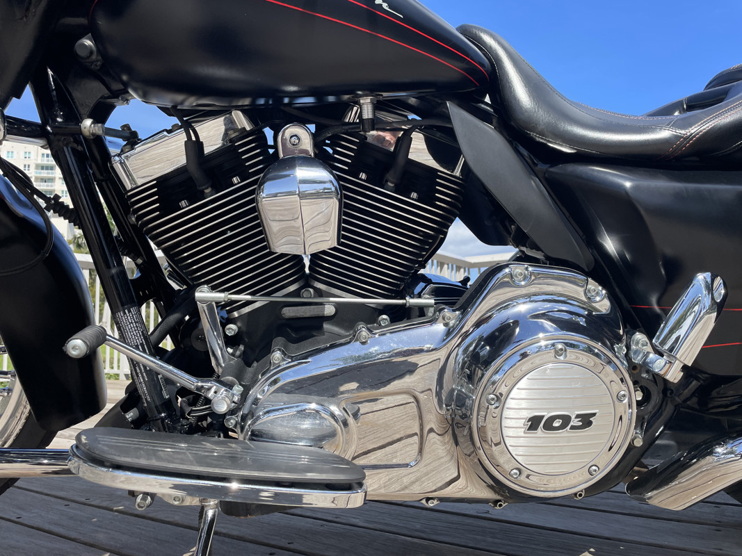 The bike has just over 41,000 Miles but then at 13-years old that is technically just slightly below average. The 103ci motor shifts through the gears perfect and brings full power to this bike. No issues here at all. No leaks no noises. The bike runs perfect.