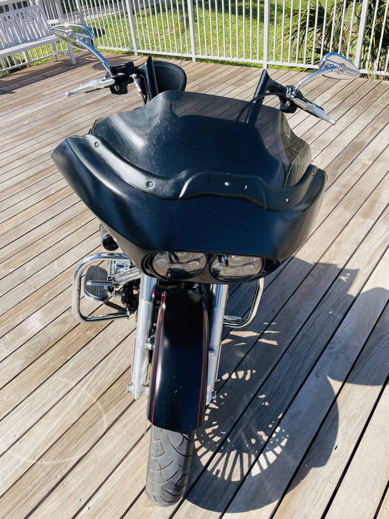 This Road Glide is a model that has a few dings in the paint here and there and the front fairing at one point had been repainted poorly with some paint runs. Please take a closer look at the walk around video on our website for accurate description of the bikes condition.