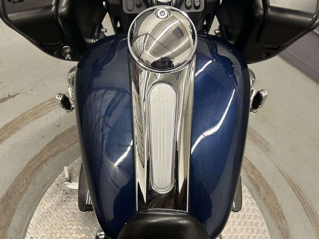 Part of the unmistakable style of the Harley-Davidson® Road Glide® Custom motorcycle is plenty of room for showing off your paint. This classically styled, bold six-gallon fuel tank doesn't just give you a bigger canvas for premium or custom paint; it holds six gallons of go so you can eat up a lot more road between pit stops. We know fuel economy is important—but so is style. Sharp, eye-catching colors and crisp pinstripes that run the length of the bike from the Shark-Nose fairing to the premium GTX® saddlebags—a one-of-a-kind look for any individual soul.