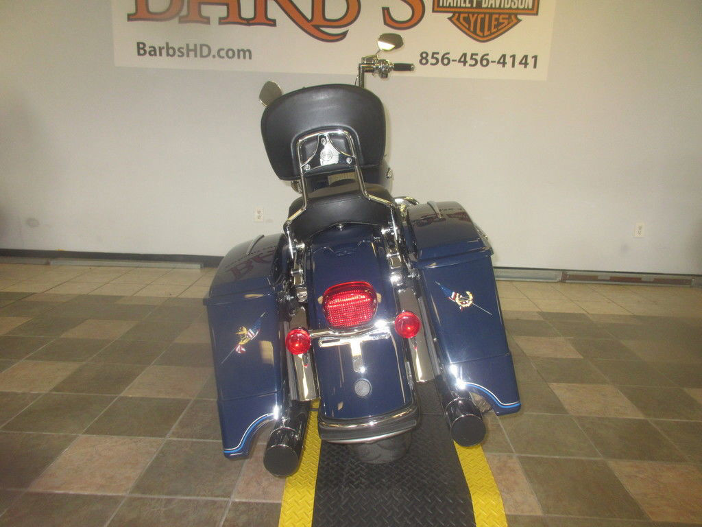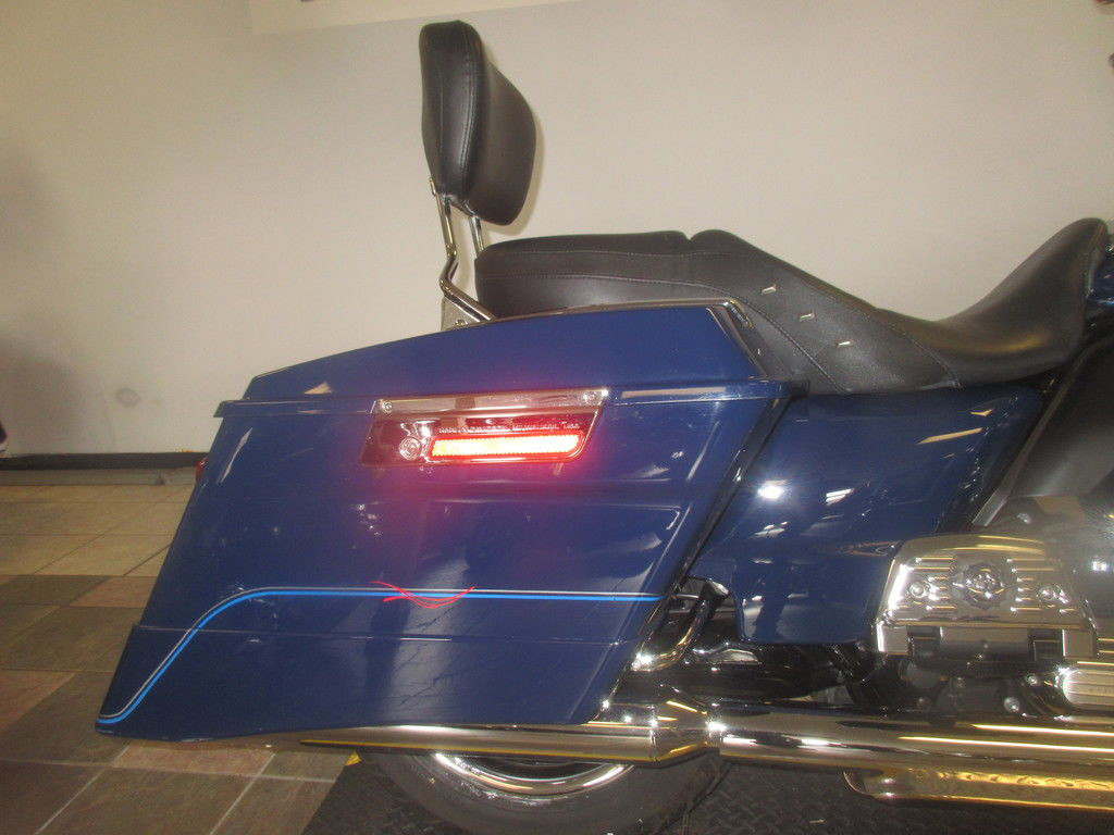 The 2012 Harley-Davidson® Road King® FLHR is powered to perfection with the performance you need for Harley® touring. New for 2012, the Harley® Road King® features a powerful, new, larger air-cooled Twin Cam 103™ Harley® engine with 6 speed cruise drive tranmission, providing more performance power for passing, hill-climbing, and riding with passenger and lugagge. The Road King® FLHR has a classic Hiawatha headlamp that is a defining feature of this bike. Big and commanding, the Harley® Road King® headlamp hearkens back to the Big Twins of the 60's. You get nothing less than the latest in materials and technology. Clear-lens reflector optics provide a longer distance high beam and wider low beam to light up your Harley® touring experience. It's a bright, striking daytime lamp that blasts a little further into the night.