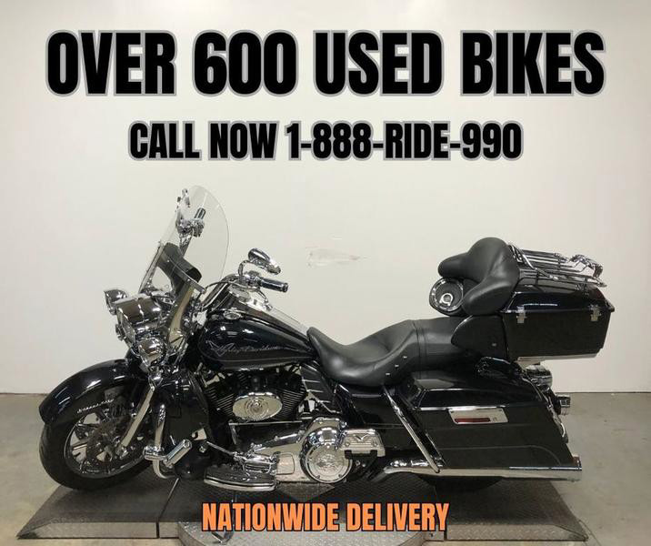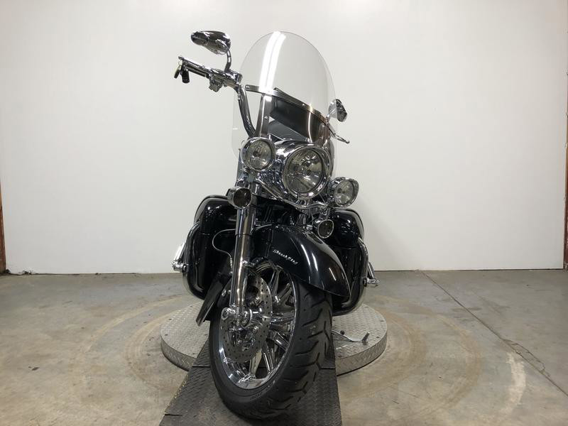USED HARLEY ROAD KING FOR SALE WITH LOW MILES AND OVER $4,000 IN EXTRAS! THIS ONE IS A MUST-SEE! CLEAN, CLEAN, CLEAN! NO DENTS, NO DINGS, NO SCRATCHES! CHROME FRONT WHEEL, CHROME FRONT END, CHROME LEVERS, CHROME SWITCH HOUSING, CHROME SWITCHES, HARLEY DAVIDSON FLAME ENGINE COVERS, BLUETOOTH STEREO, 4 SPEAKERS, UPGRADED FLOOR BOARDS, UPGRADED LOWER CONTROLS, MATCHING HIGHWAY PEGS, WINDSHIELD, HARD SADDLE BAGS, MATCHING TRUNK, AND THE DUAL VANCE & HINES EXHAUST SOUNDS GREAT! JUST SERVICED AT THE DEALERSHIP, INSPECTED, ALL FLUIDS CHANGED, RUNS STRONG, EVERYTHING WORKS, NEEDS NOTHING! BUY WITH CONFIDENCE. THIS ROAD KING TURNS HEADS! STAND OUT FROM THE CROWD!