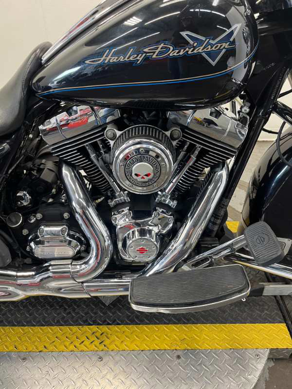 Discover the 2012 Harley-Davidson ROAD KING, a masterpiece crafted from years of history and innovation. This touring legend, finished in a stunning MIDNIGHT PEARL with elegant pinstripe detailing, embodies the essence of the open road, offering an unparalleled riding experience that is the dream of every motorcycle enthusiast.